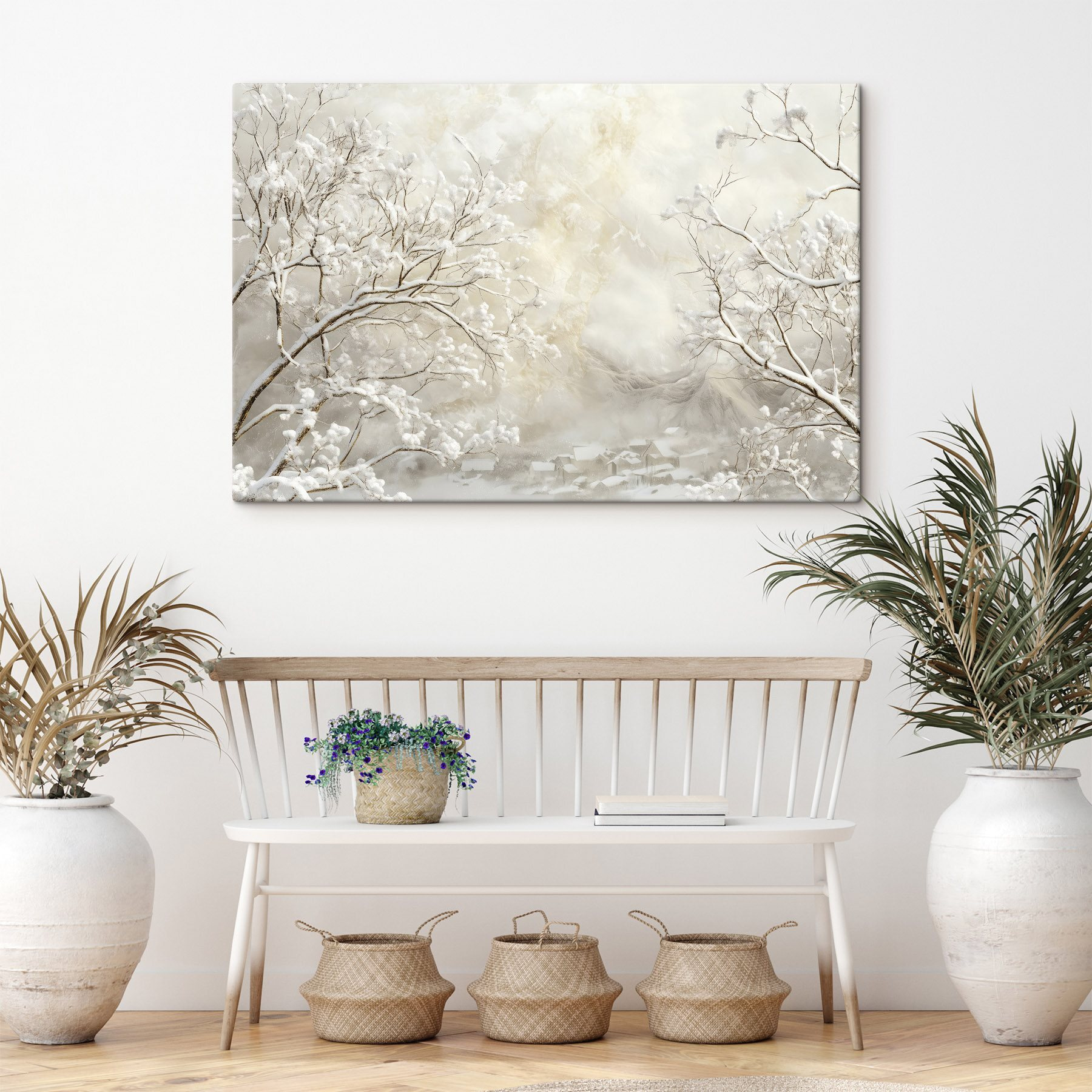 Transformeer je ruimte met deze prachtige canvasprint met besneeuwde bomen in een dromerig, besneeuwd landschap. Stel je voor dat je lekker knus met een kop chocolademelk naar dit kunstwerk kijkt en de kilte van de winter voelt – een welkome ontsnapping aan de alledaagse drukte. De zachte tinten en zachte vormen roepen een vredige, bijna magische sfeer op die perfect is voor elke kamer. Of het nu boven een open haard hangt of een rustig hoekje siert, het brengt een vleugje natuur binnenshuis en herinnert ons aan de schoonheid van eenvoud. Stel je voor: elke blik voelt als een frisse wind.