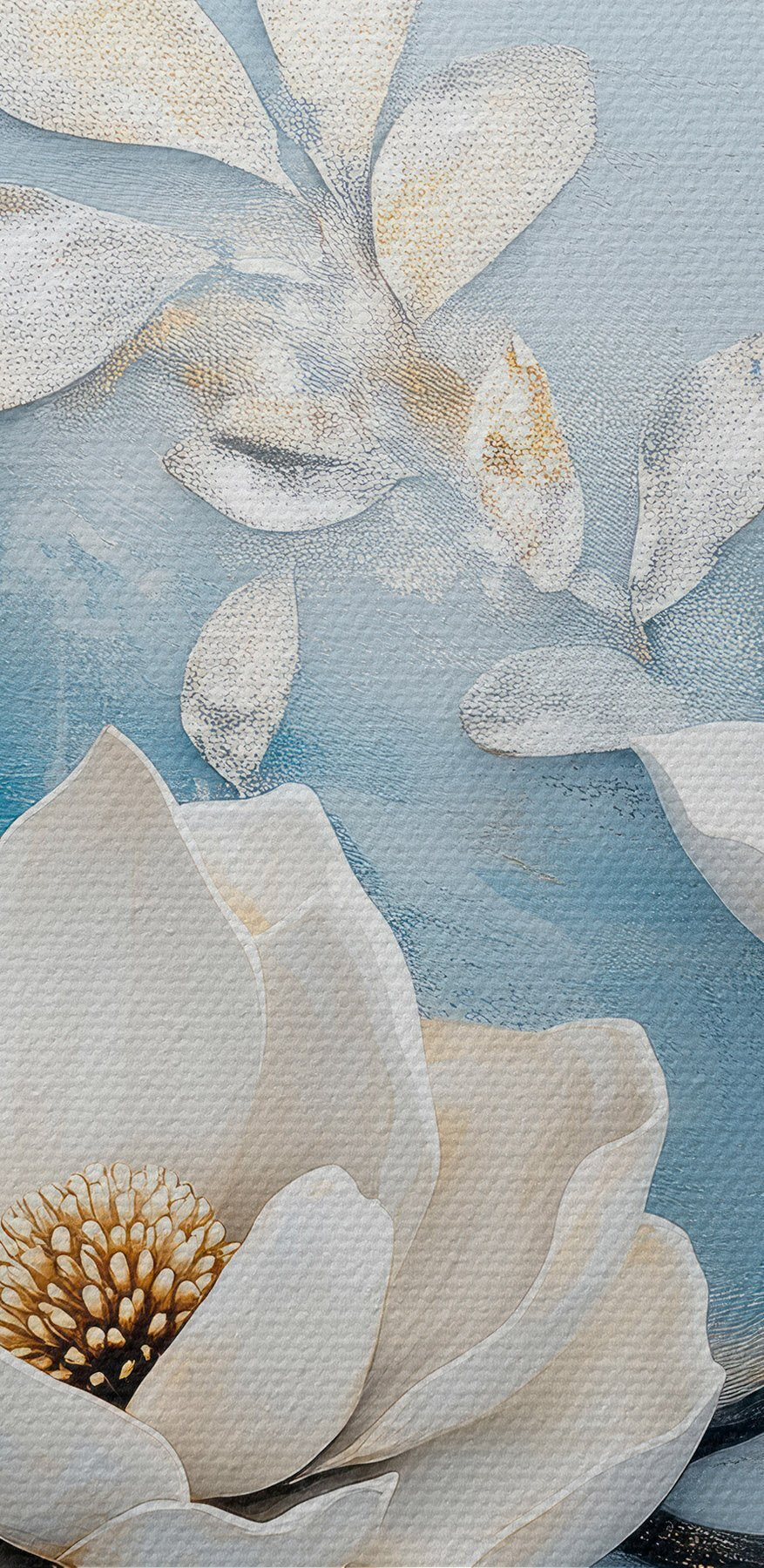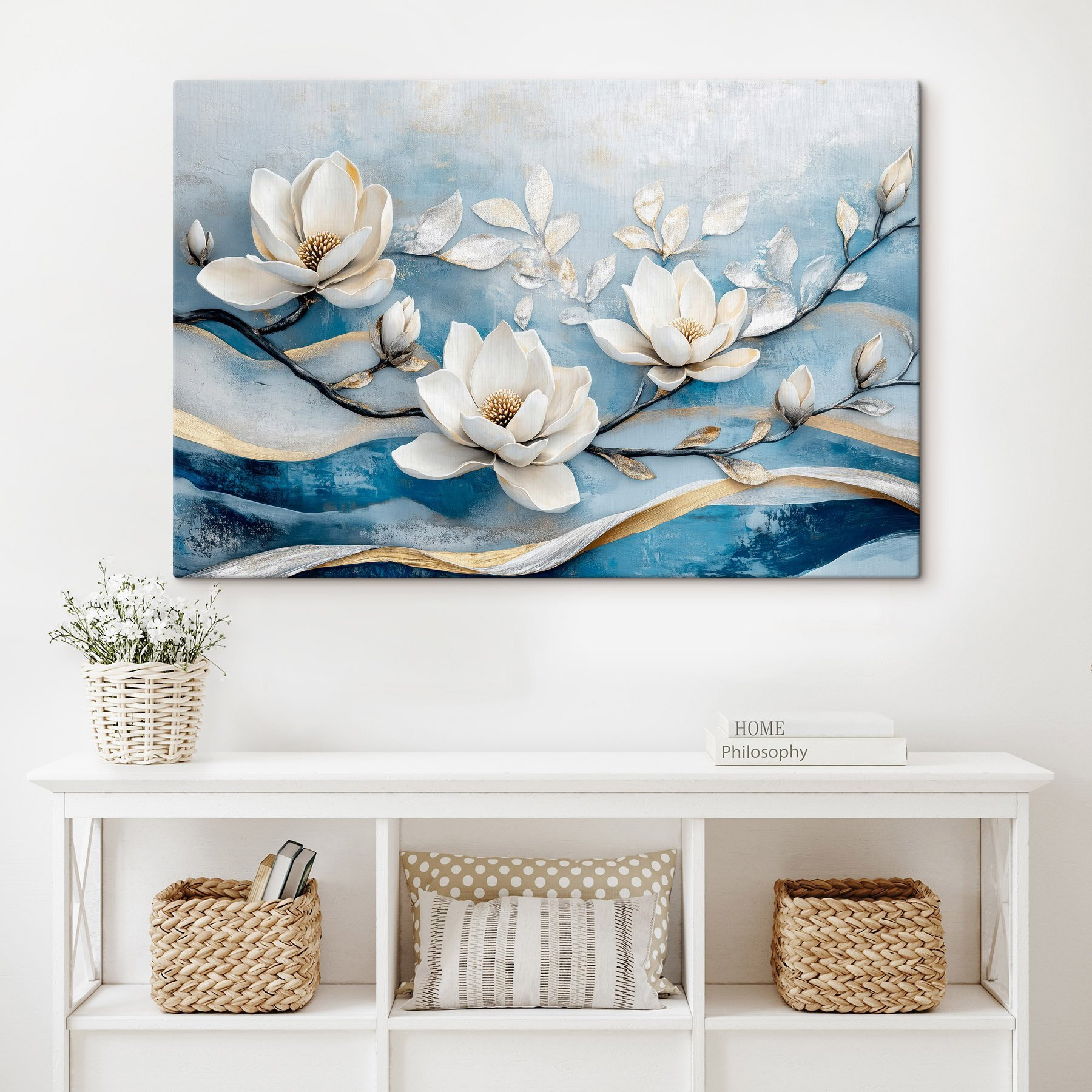 Tover elke muur om in een rustgevend oord met deze prachtige canvasprint met witte bloemen die dansen tegen een serene blauwe achtergrond. Het is alsof je een stukje natuur in huis haalt – zonder dat je last hebt van stuifmeelnies. Stel je voor dat je ‘s ochtends aan je koffie nipt, terwijl het zonlicht die zachte bloemblaadjes vangt en een gezellige, uitnodigende sfeer creëert. Dit kunstwerk is perfect om een woonkamer op te fleuren of een slaapkamer mee in te richten. Wie wil er nu geen dagelijkse herinnering aan de schoonheid van de natuur thuis? Plus, het zal zeker een aantal leuke gesprekken op gang brengen.