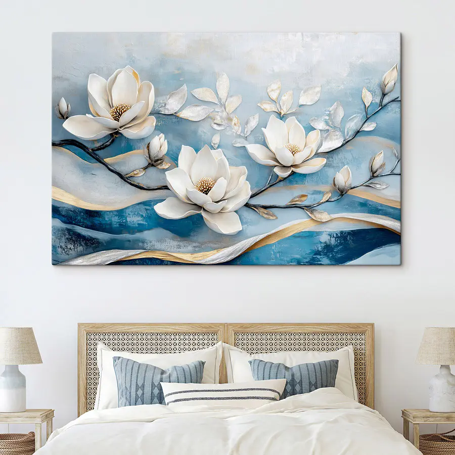 Tover elke muur om in een rustgevend oord met deze prachtige canvasprint met witte bloemen die dansen tegen een serene blauwe achtergrond. Het is alsof je een stukje natuur in huis haalt – zonder dat je last hebt van stuifmeelnies. Stel je voor dat je ‘s ochtends aan je koffie nipt, terwijl het zonlicht die zachte bloemblaadjes vangt en een gezellige, uitnodigende sfeer creëert. Dit kunstwerk is perfect om een woonkamer op te fleuren of een slaapkamer mee in te richten. Wie wil er nu geen dagelijkse herinnering aan de schoonheid van de natuur thuis? Plus, het zal zeker een aantal leuke gesprekken op gang brengen.