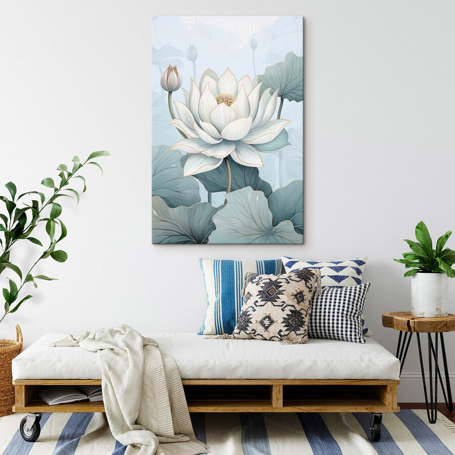 Fleur elke kamer op met deze betoverende canvasprint met een serene witte bloem omringd door weelderige groene bladeren. Stel je voor dat je een ruimte binnenloopt en je voelt een golf van rust over je heen komen. Het is als een kleine herinnering van de natuur om het rustiger aan te doen en de schoonheid om ons heen te waarderen. Of het nu in de woonkamer is of in een gezellig hoekje, dit stuk brengt een vleugje frisheid dat vreugde en gespreksstof opwekt. Perfect voor wie een vleugje groen wil toevoegen zonder het onderhoud – water geven of snoeien is niet nodig! Gewoon achterover leunen en de goede vibes laten stromen.