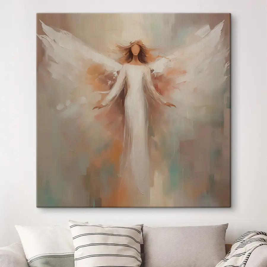 Verander een saaie muur in een dromerige ontsnapping met deze betoverende canvasprint van een vrouw met vleugels. De zachte, wervelende kleuren verspreiden een rustgevende sfeer die bijna aanvoelt als een zachte omhelzing. Stel je voor dat het in een knus hoekje of boven een leeshoekje hangt en de ruimte een vleugje gratie en sereniteit geeft. Dit sieraad blijft niet gewoon hangen; het nodigt uit tot dagdromen en rustige momenten. Perfect om een vleugje inspiratie toe te voegen, het is alsof er een kleine beschermengel over je creativiteit waakt. Wie zou dat niet aan de muur willen hebben?
