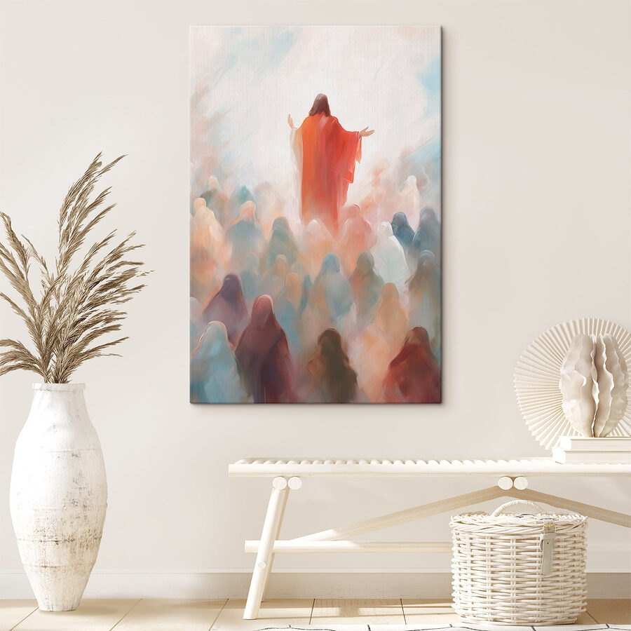 Transformeer elke ruimte met deze fascinerende canvasprint, met een opvallende scène van een man in een rood gewaad omringd door een zee van figuren. Het is alsof je binnenstapt in een moment bevroren in de tijd, waar fluisteringen van verhalen in de lucht hangen. Stel je voor dat het in een gezellige woonkamer hangt – een perfecte gespreksstarter. Bezoekers kunnen er even bij stilstaan, naar kijken en de warmte van de kleuren over zich heen voelen spoelen, wat uitnodigt tot nadenken of dagdromen. Of het nu spreekt tot spiritualiteit of gewoon een vleugje creativiteit biedt, dit stuk brengt een unieke sfeer die elke hoek van home sweet home kan opfleuren. De mix van zachte tinten roept een gevoel van vrede en verwondering op, waardoor het een prachtige aanvulling is op elke muur.