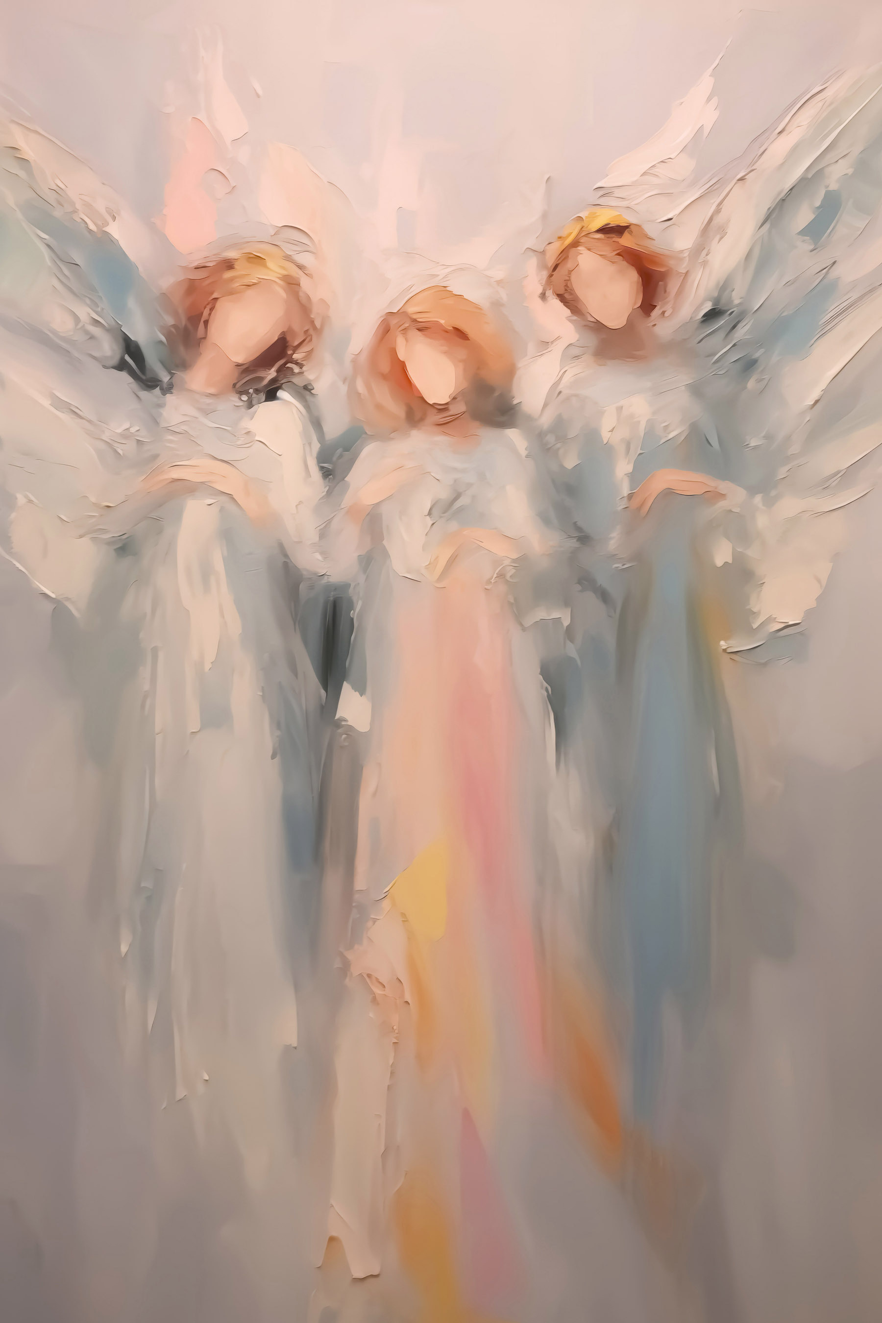 Transformeer je ruimte met deze betoverende canvasprint met etherische engelen met vleugels. Het is als een frisse wind voor je muren! Stel je voor dat je elke dag wakker wordt met deze hemelse figuren, die een kalme en opbeurende sfeer brengen. De zachte kleuren passen prachtig bij elkaar en creëren een serene sfeer die perfect is voor gezellige hoekjes of zelfs als prachtig middelpunt in grotere kamers. Vrienden zullen je vragen waar je zo’n juweeltje hebt gevonden en jij zult glimlachen omdat je weet dat je een stuk hebt dat rust uitstraalt. Zweef door het leven omringd door dit hemelse kunstwerk – het is een vleugje magie dat wacht om je dag op te fleuren!