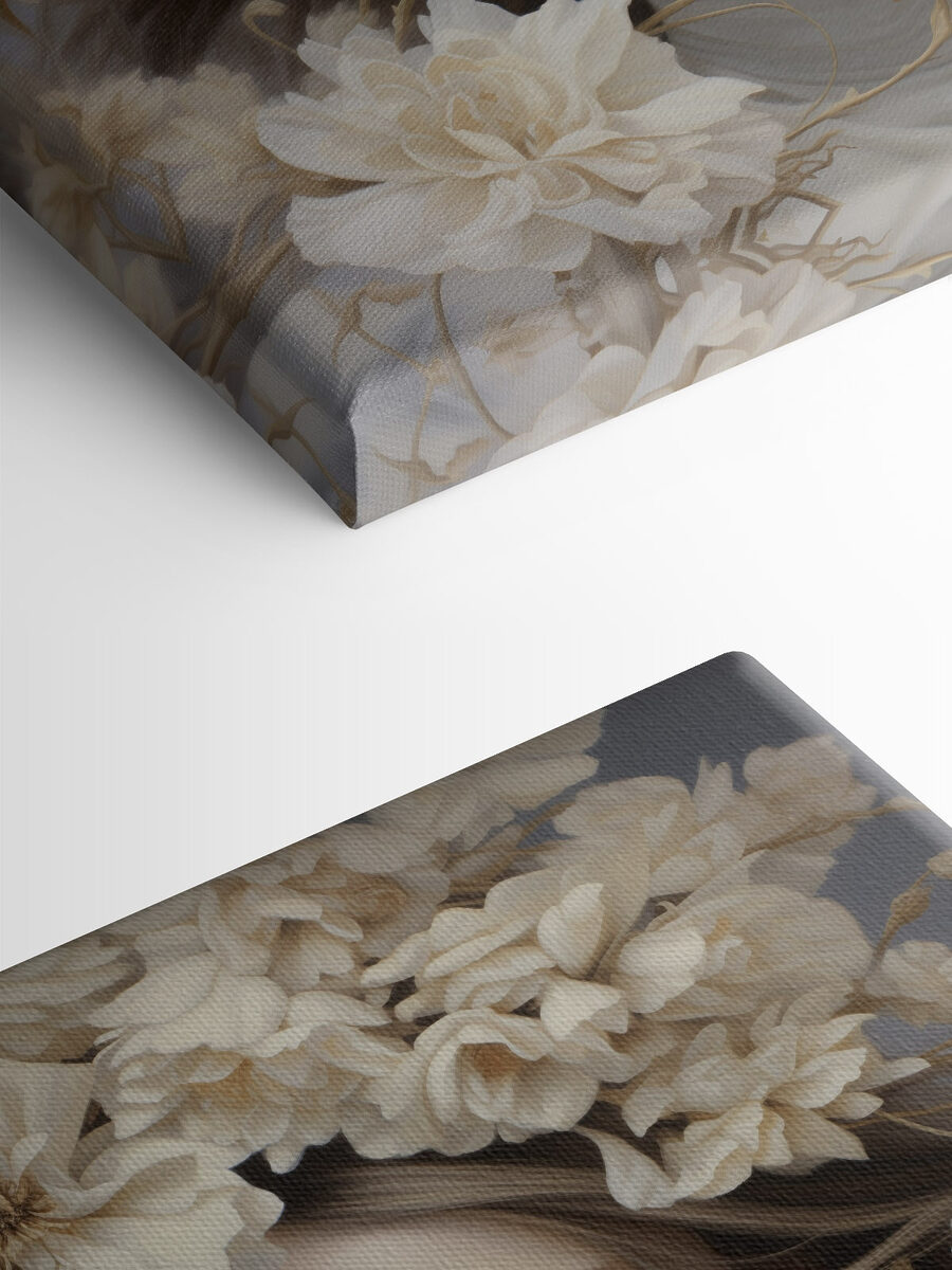 Transformeer elke kamer met deze betoverende canvasprint van een vrouw met een kroon van bloemen. De mix van zachte kleuren en delicate bloemen voegt een vleugje gratie en eigenzinnigheid toe aan je kamer. Stel je voor dat je er langs loopt en je een beetje opgebeurd voelt, alsof de natuur zoete woordjes fluistert in je woonkamer. Dit kunstwerk is perfect voor een knus hoekje of als statement, het geeft een rustige sfeer waardoor je even stilstaat en ademhaalt. Het is als een kleine tuin verpakt in een portret – klaar om een vleugje magie in je huis te brengen.