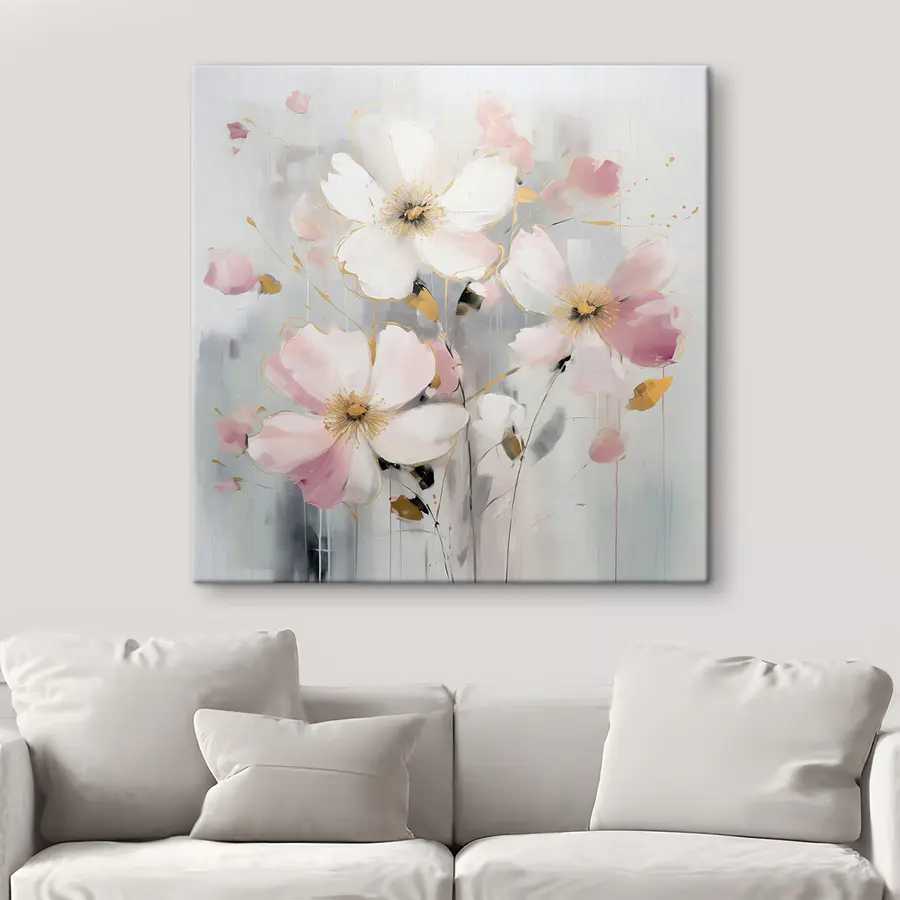 Fleur elke kamer op met deze charmante canvasprint van bloemen op een zachtgrijze achtergrond. Het is als een teug frisse lentelucht, maar dan zonder het niezen van pollen. Stel je voor dat je een ruimte binnenloopt en begroet wordt door deze delicate bloemen, waarvan elk bloemblaadje zoete woordjes fluistert over zachte dagen en zonnige vibes. Perfect voor de woonkamer of een gezellig leeshoekje, deze bloemen voegen een vleugje warmte toe zonder te hard hun best te doen. Bloemsierkunst heeft iets waardoor het leven net iets levendiger aanvoelt, als een vriendelijke knuffel voor je muren. Of het nu een herinnering is aan de schoonheid van de natuur of gewoon een leuk vleugje kleur, dit stuk heeft die gemakkelijke charme die een kamer samenbrengt.