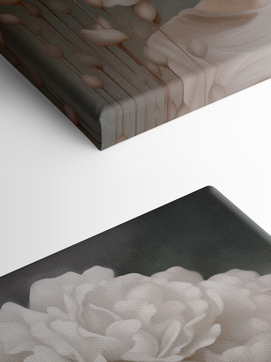Transformeer je ruimte met deze betoverende canvasprint met een serene vrouw versierd met prachtige witte bloemen. Het is niet zomaar een decoratie; het is een uitnodiging om even stil te staan en adem te halen. Stel je het zachte gefluister van de natuur voor, gevangen in elk bloemblaadje, moeiteloos versmeltend met je knusse hoekje. Dit stuk belooft een vleugje rust en charme toe te voegen, waardoor het een perfecte metgezel is voor een rustig leeshoekje of een levendige woonkamer. Vrienden zullen misschien even stoppen en het bewonderen, zich afvragend of je een geheime vriend-kunstenaar hebt. Hang het op en zie hoe de magie zich ontvouwt!