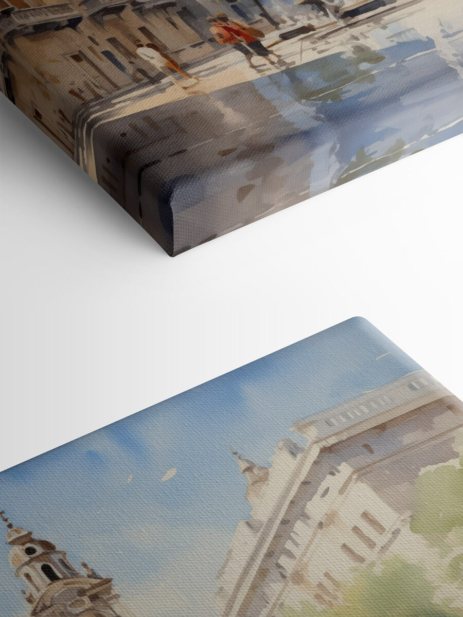 Tover elke muur om in een dagdroom met deze prachtige aquarel canvasprint. Stel je een zonnige dag voor, een charmant gebouw dat trots overeind staat met een speelse fontein die ervoor danst. De perfecte mix van stedelijk leven en natuur, waardoor het een fantastische gespreksstarter is. Stel je voor dat vrienden zich verzamelen en onder het genot van een kopje koffie hun favoriete details aanwijzen. De ontspannen sfeer nodigt uit tot een warme, gastvrije energie in je ruimte. Of het nu in een gezellige woonkamer of een chique kantoor hangt, dit stuk brengt leven in de brouwerij en voegt een laag artistieke flair toe die gewoon goed voelt.