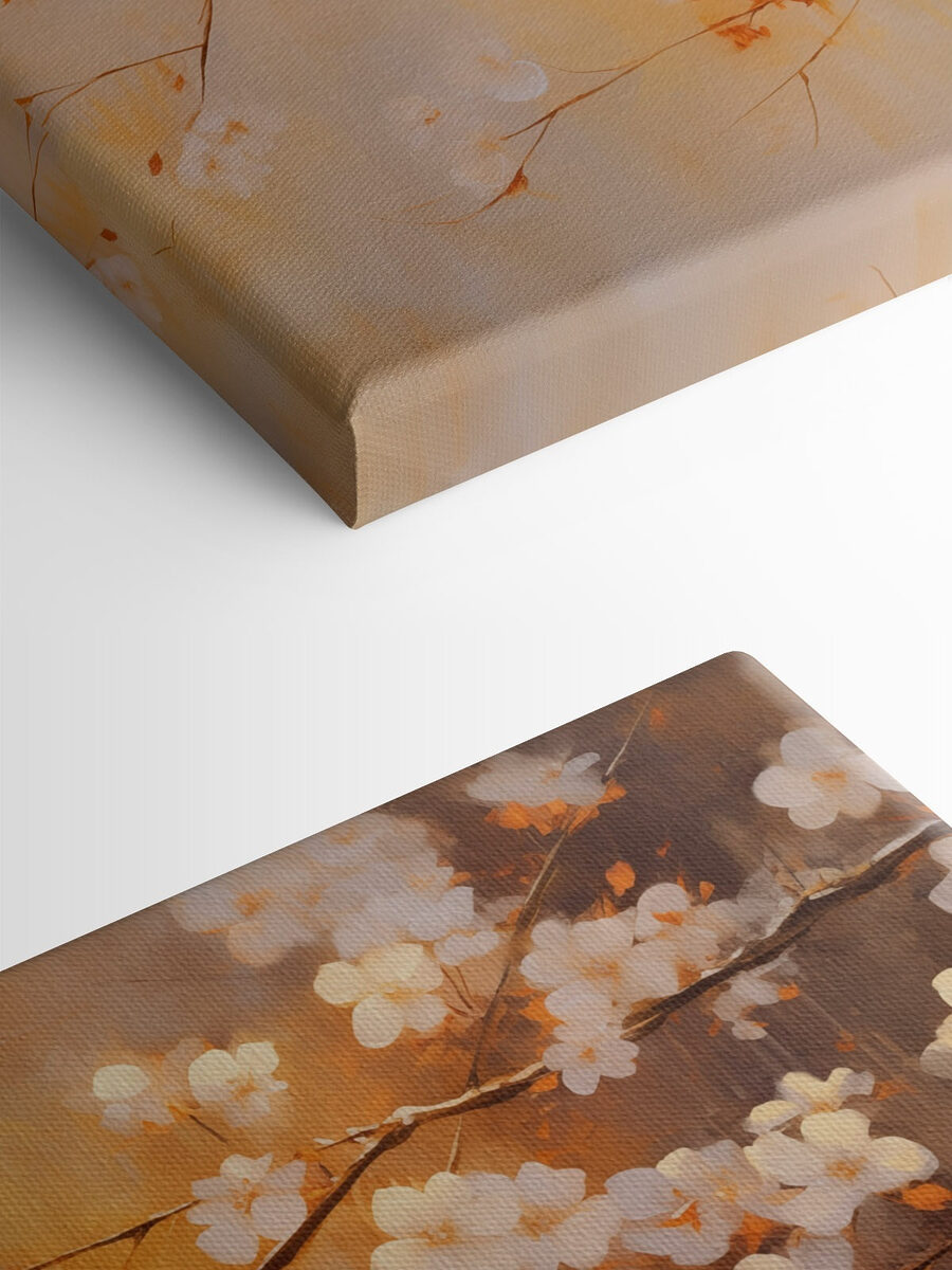 Breng een frisse wind in elke kamer met deze prachtige canvasprint met delicate boomtakken versierd met zachte witte bloemen. Het is net alsof de natuur je huis is binnengestapt. Stel je voor dat je je oprolt met een kopje thee en de zachte sfeer van dit kunstwerk je meeneemt naar een serene tuin, waar alles precies goed voelt. De warme, subtiele kleuren mengen moeiteloos, waardoor het perfect past in gezellige hoekjes of lichte woonruimtes. Wie wist dat bloesems de perfecte gespreksstarter konden zijn? Dit kunstwerk zou je gasten wel eens kunnen laten dromen van de lente!