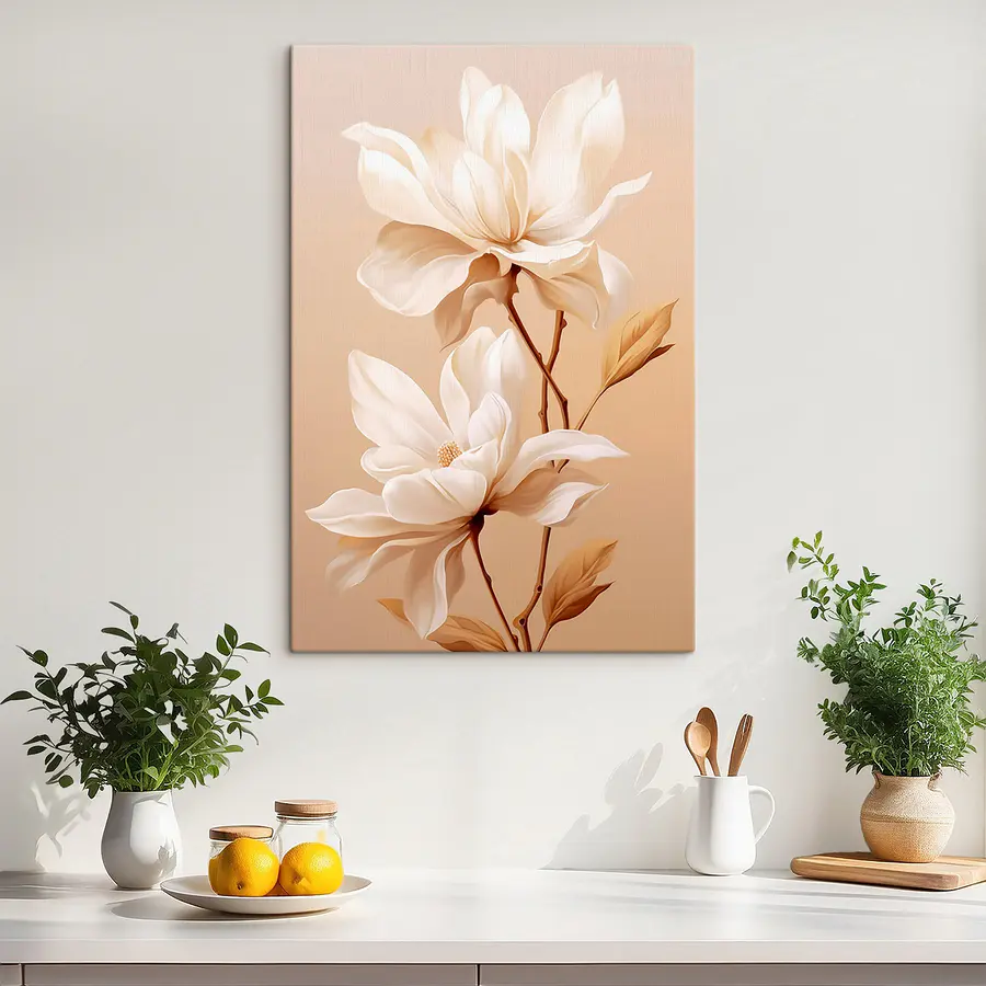 Stel je voor dat je een kamer binnenstapt die zacht en elegant is. De “Delicate Blooms in Soft Tones” canvasprint verandert elke ruimte moeiteloos in een serene oase. Die zachte, bloeiende bloemen lijken geheimen van de lente te fluisteren en roepen herinneringen op aan luie middagen in zonovergoten tuinen. Het is alsof je een stukje natuur aan je muur hebt hangen dat je eraan herinnert om adem te halen en te genieten van de schoonheid om je heen. Perfect voor die lege muur waar je naar zit te staren, of misschien als knus statement in een leeshoekje. Geef je huis dat kleine duwtje in de richting van kalme verfijning; het is bloemencharme zonder dat je groene vingers nodig hebt.