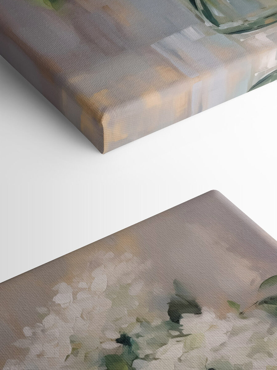 Stel je een gezellig hoekje in je huis voor waar deze mooie canvasprint de boel kan opfleuren. Met een boeket witte bloemen in een eenvoudige glazen pot is het een perfecte mix van fris en rustgevend. Stel je voor dat dit aan de muur hangt – een echte charme! Het straalt elegantie uit zonder al te veel moeite te doen, zoiets als de vriendin die er altijd verzorgd uitziet maar het moeiteloos voor elkaar krijgt. Dit bloemstuk voegt niet alleen decoratie toe, het brengt warmte in elke ruimte. Voel de rust terwijl je aan je koffie nipt en naar die vredige bloemen kijkt. Wie wil die sfeer nou niet?