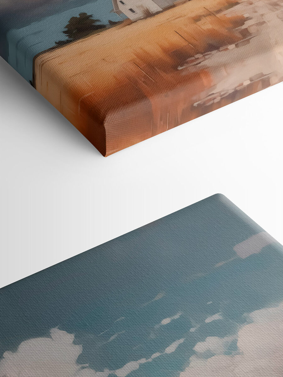 Stel je voor dat je elke dag wakker wordt met een charmant huis genesteld in een gouden veld onder een dromerige wolkenlucht. Deze canvasprint brengt die serene sfeer je kamer binnen en is daarmee het perfecte middelpunt voor elke kamer. Het is als een frisse plattelandslucht die uitnodigt tot gezellige, ontspannen gevoelens. Stel je voor dat je ‘s ochtends aan je koffie nipt terwijl je verdwaalt in die weidse luchten en het zachte wiegen van de gouden grassen. Het is niet zomaar kunst; het is een stemming, een kleine ontsnapping aan de drukte van het leven. Perfect om warmte en karakter toe te voegen en gasten zullen je vragen waar je zo’n uniek juweeltje hebt gevonden. Een beetje natuur, een beetje nostalgie en een heleboel charme – wat is er niet leuk aan?