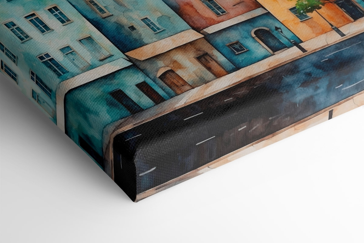 Transformeer je ruimte met deze charmante aquarel canvasprint met een prachtige rij gebouwen. Het is net een mini-vakantie op je muur – door de speelse kleuren en zachte penseelstreken voel je bijna de zachte bries van een bruisende stad. Stel je voor dat je voor dit tafereel staat, met een warme kop koffie in de hand, terwijl het zonlicht door je raam naar binnen stroomt. Elke blik doet dromen van een wandeling door de levendige straten. Perfect voor gezellige hoekjes of een lichte woonkamer, dit stuk voegt een vleugje eigenzinnigheid en verhaal toe aan elk huis. Of je nu vrienden ontvangt of geniet van stille momenten, het tovert elke keer weer een glimlach op je gezicht.
