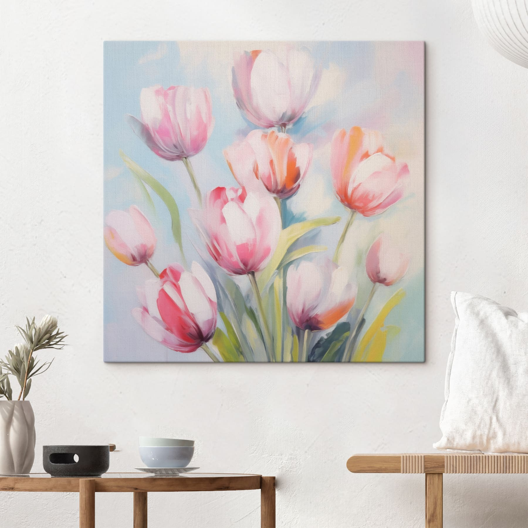 Breng de frisheid van de lente in elke kamer met deze prachtige canvasprint met roze en witte tulpen. Het voelt als een vrolijk tuinfeest op een zonnige dag – die zachte bloemen lijken zachtjes mee te deinen met een onzichtbaar briesje. Stel je voor dat je langsloopt en een glimp opvangt; het is bijna alsof ze gedag zwaaien. Perfect om een gezellig leeshoekje op te fleuren of een eethoek van kleur te voorzien, dit kunstwerk blijft niet zomaar staan – het is een uitnodiging om te glimlachen. Wie wist dat tulpen zo uitnodigend konden zijn? Het is alsof je een stukje natuur in huis haalt, zelfs als het buiten minder mooi weer is. Hang ze gewoon op en zie hoe je ruimte verandert. Eenvoudig, elegant en moeiteloos charmant!