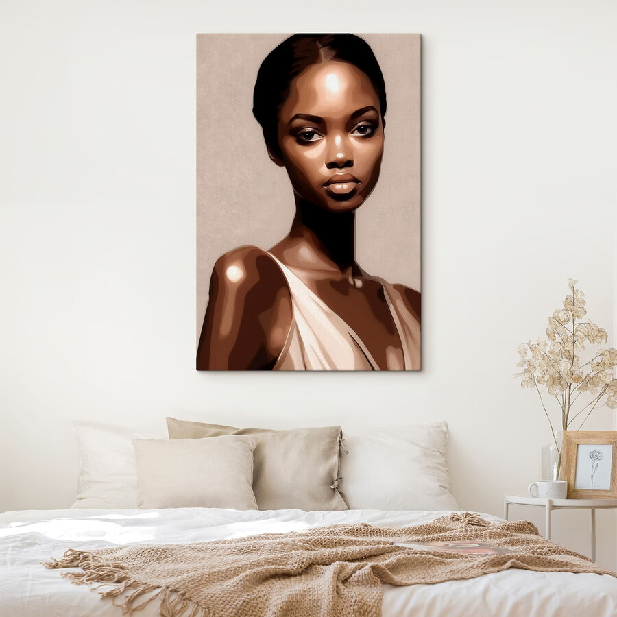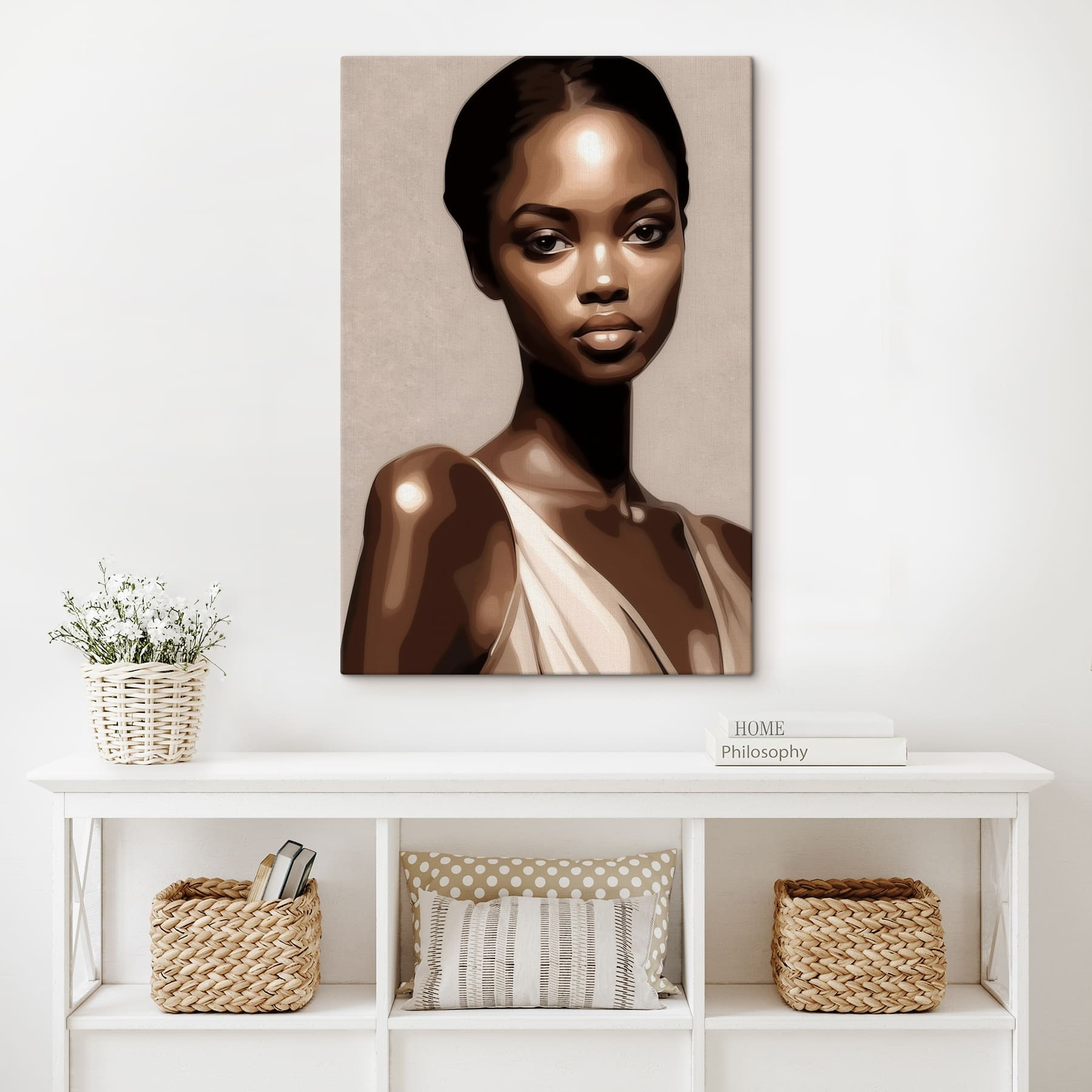 Breng een vleugje elegantie in je interieur met deze opvallende canvasprint. Met een vrouw in een eenvoudige witte tanktop en donker haar, trekt haar blik je naar binnen, bijna alsof ze een geheim te delen heeft. Stel je voor dat dit stuk in je woonkamer hangt, gesprekken aanwakkert tijdens borrels of gewoon een moment van rust biedt wanneer je het nodig hebt. De subtiele tinten passen moeiteloos bij verschillende inrichtingsstijlen, waardoor het een veelzijdige keuze is. Perfect voor mensen die houden van kunst die een verhaal vertelt – elke keer als je er naar kijkt, vind je misschien wel een nieuw detail dat je opvalt. Het is alsof je een goede vriend om je heen hebt, altijd aanwezig om je dag op te vrolijken.