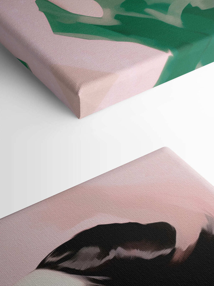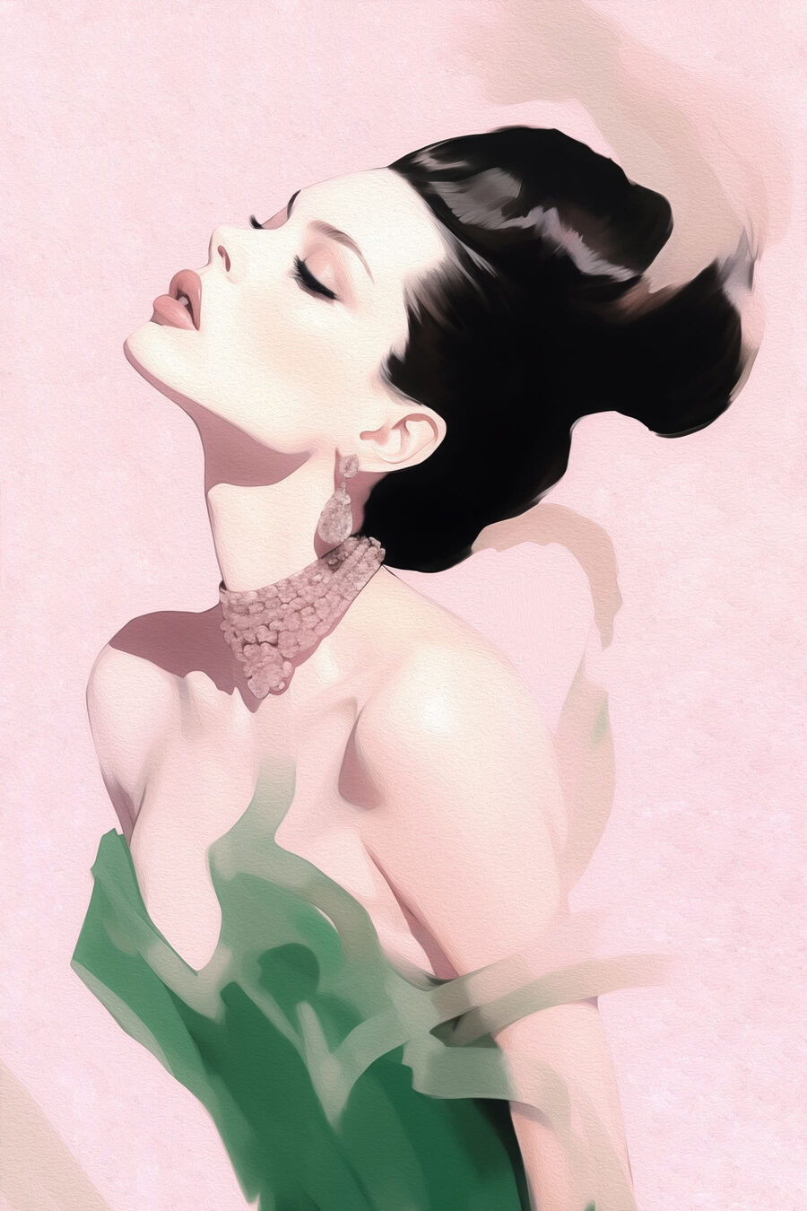 Stap in een wereld van chique elegantie met deze prachtige canvasprint, met een vrouw die zelfvertrouwen uitstraalt met haar stijlvolle kapsel. Het is alsof ze klaar is voor haar volgende grote avontuur – misschien een avondje uit of een onverwachte ontmoeting. Geplaatst in een gezellige hoek van een kamer, lokt dit kunstwerk onmiddellijk gesprekken uit en voegt het een vleugje persoonlijkheid toe aan elke ruimte. De zachtroze achtergrond vult de levendige outfit prachtig aan en creëert een rustgevende maar toch speelse sfeer. Stel je voor dat je een bijeenkomst organiseert en dat je gasten zich vergapen aan dit kunstwerk, waardoor een ontspannen sfeer vol creativiteit ontstaat. Het is het soort kunst dat niet alleen aan de muur hangt, maar de ruimte tot leven brengt!
