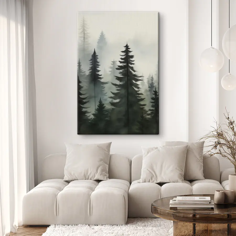 Transformeer elke ruimte met deze betoverende canvasprint met een serene groep bomen in een mistig bos. Stel je voor dat je wakker wordt met deze rustgevende scène – die donkere, torenhoge dennen die naar de hemel reiken en de zachte nevel die bijna geheimen van de natuur fluistert. Als je deze schoonheid aan de muur hangt, geeft dat niet alleen charme, maar ook een gevoel van rust, als een teug frisse boslucht. Perfect voor gezellige hoekjes of om een ontspannen sfeer te creëren in een thuiskantoor. Het is net alsof je je eigen stukje buiten hebt, zonder wandelschoenen!
