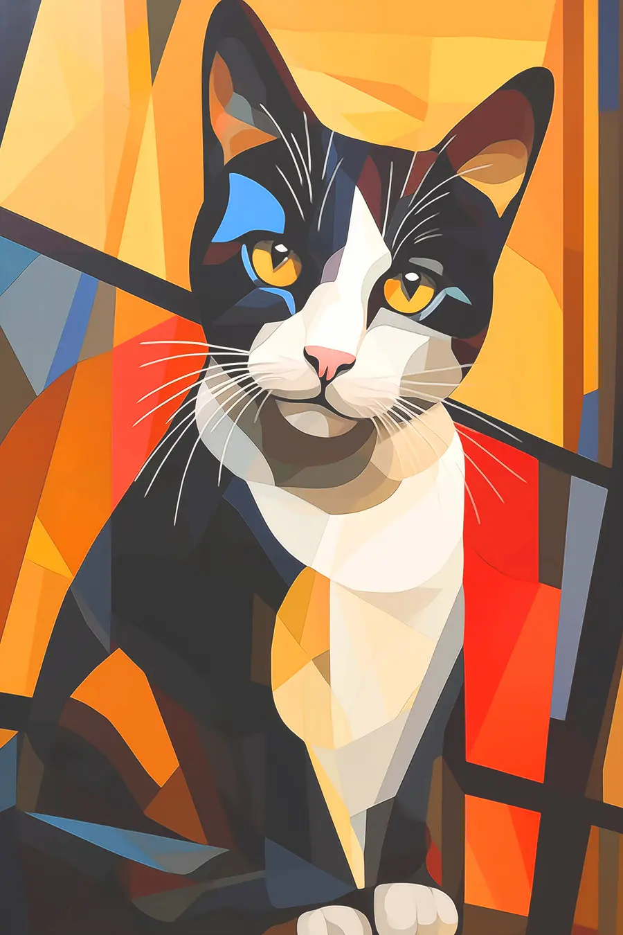 Transformeer je woonruimte met deze levendige canvasprint met een opvallende kat met gele ogen. De felle kleuren en geometrische vormen brengen een energie die elke kamer kan opfleuren. Stel je voor dat deze speelse kat de wacht houdt over je gezellige hoekje of inspireert tot leuke gesprekken tijdens bijeenkomsten. Het is alsof dit nieuwsgierige katje iedereen uitnodigt om hun wildste avonturen te delen. Plus, het voegt een grillig tintje toe zonder het gedoe van eten geven of kattenbakvulling schoonmaken. Perfect voor kattenliefhebbers of iedereen die een vleugje creativiteit wil, dit kunstwerk zal zeker in de smaak vallen.