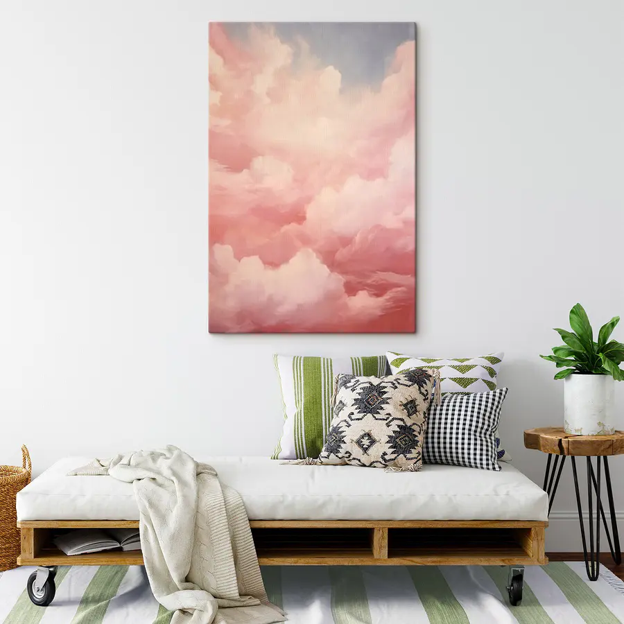 Stel je voor dat je een kamer binnenstapt vol met zachte, pluizige roze wolken die lui door de lucht drijven. Deze canvasprint doet precies dat en verandert elke ruimte in een dromerige ontsnapping. Perfect voor gezellige hoekjes of een rustgevende sfeer, het nodigt uit tot dagdromen en luie middagen. Stel je voor dat je koffie drinkt terwijl je je koestert in de rustgevende gloed of verhalen deelt met vrienden terwijl de zachte tinten op de muren dansen. Of het nu vreugde, nostalgie of gewoon een gevoel van verwondering opwekt, dit stuk voegt een vleugje eigenzinnigheid toe dat een hele dag kan opvrolijken. Wie wil er nou niet een stukje hemel bij je thuis?