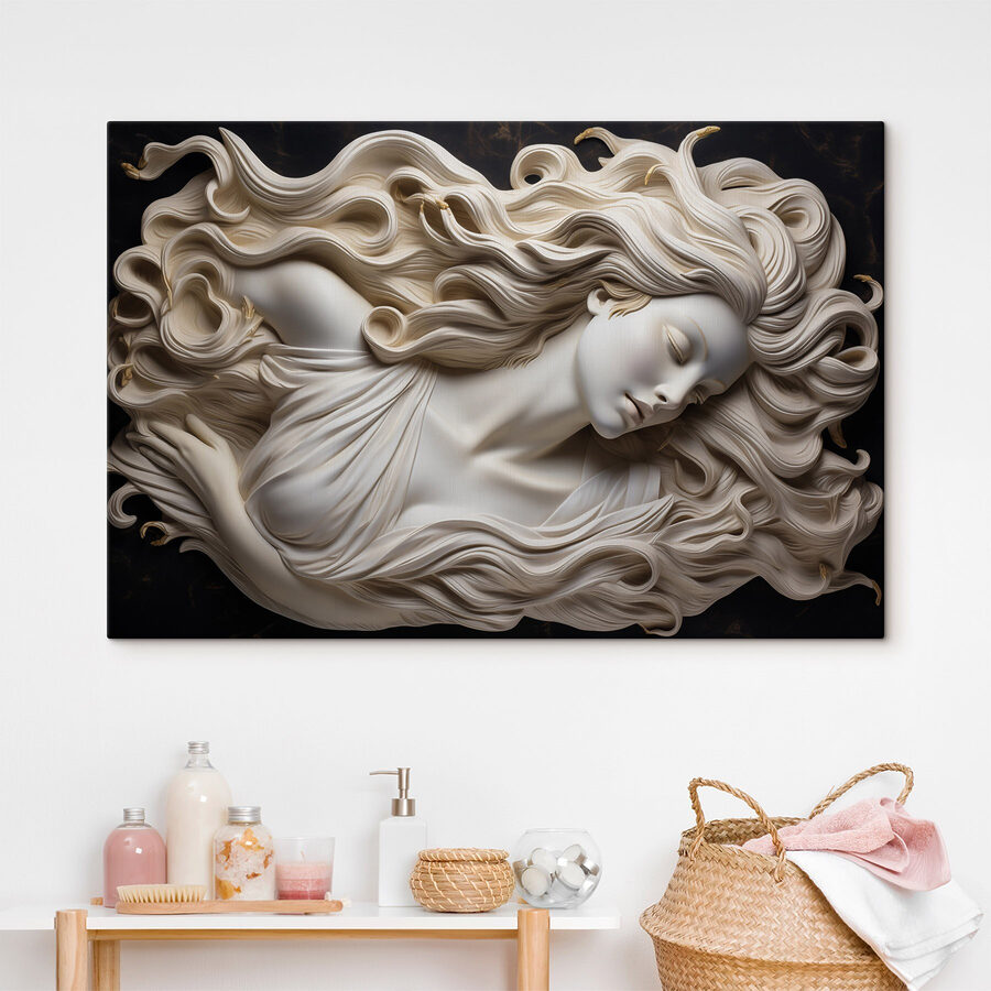 Transformeer je ruimte met deze fascinerende canvasprint met een sereen beeld van een vrouw met wapperend haar, die rust uitstraalt. Stel je voor dat je een kamer binnenloopt en begroet wordt door zulke elegantie – het is als een zacht duwtje in de rug om te vertragen en adem te halen. Dit kunstwerk is perfect voor een knus hoekje of een stijlvolle woonkamer en nodigt uit tot dagdromen en diepe gedachten. Vrienden zullen willen weten waar het vandaan komt en nieuwsgierige gesprekken op gang brengen. En wie wil er nu niet een beetje klassieke schoonheid die over hen waakt, toch? Een werkelijk betoverende toevoeging die zowel tijdloos als fris aanvoelt!
