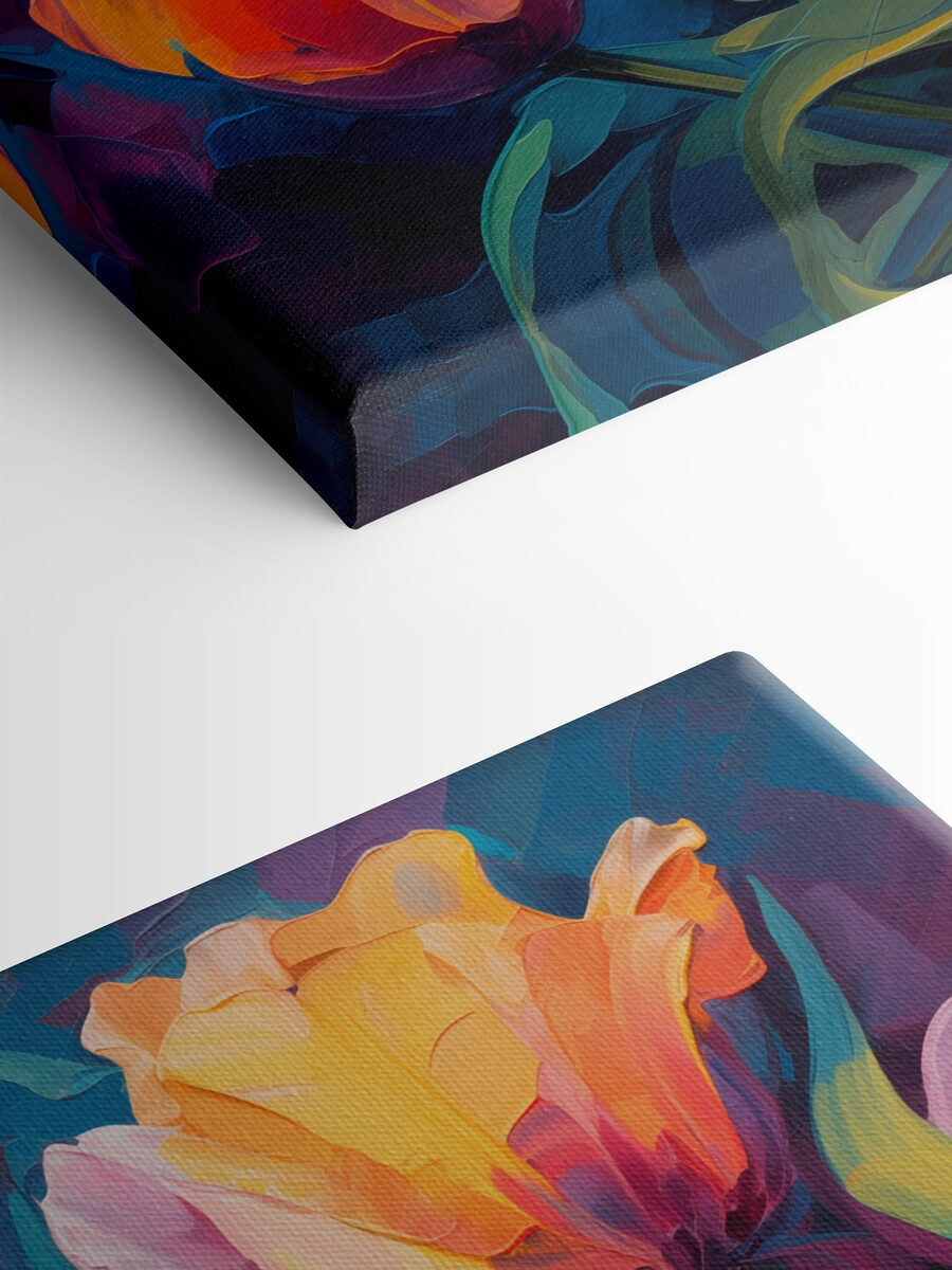 Fleur elke kamer op met deze prachtige canvasprint met een levendig boeket bloemen tegen een diepblauwe achtergrond. Het is alsof je een tuin in huis haalt zonder het gedoe van water geven! Elk bloemblaadje lijkt te dansen en barst van de energieke kleuren die iedereen kunnen opvrolijken. Stel je dit voor boven een gezellige bank of in een thuiskantoor; het voegt een vleugje vreugde en creativiteit toe. Vrienden zullen er misschien even bij stilstaan en het bewonderen en zich afvragen of ze zelf ook aan kunst moeten gaan doen. Geen groene vingers nodig, alleen liefde voor schoonheid!