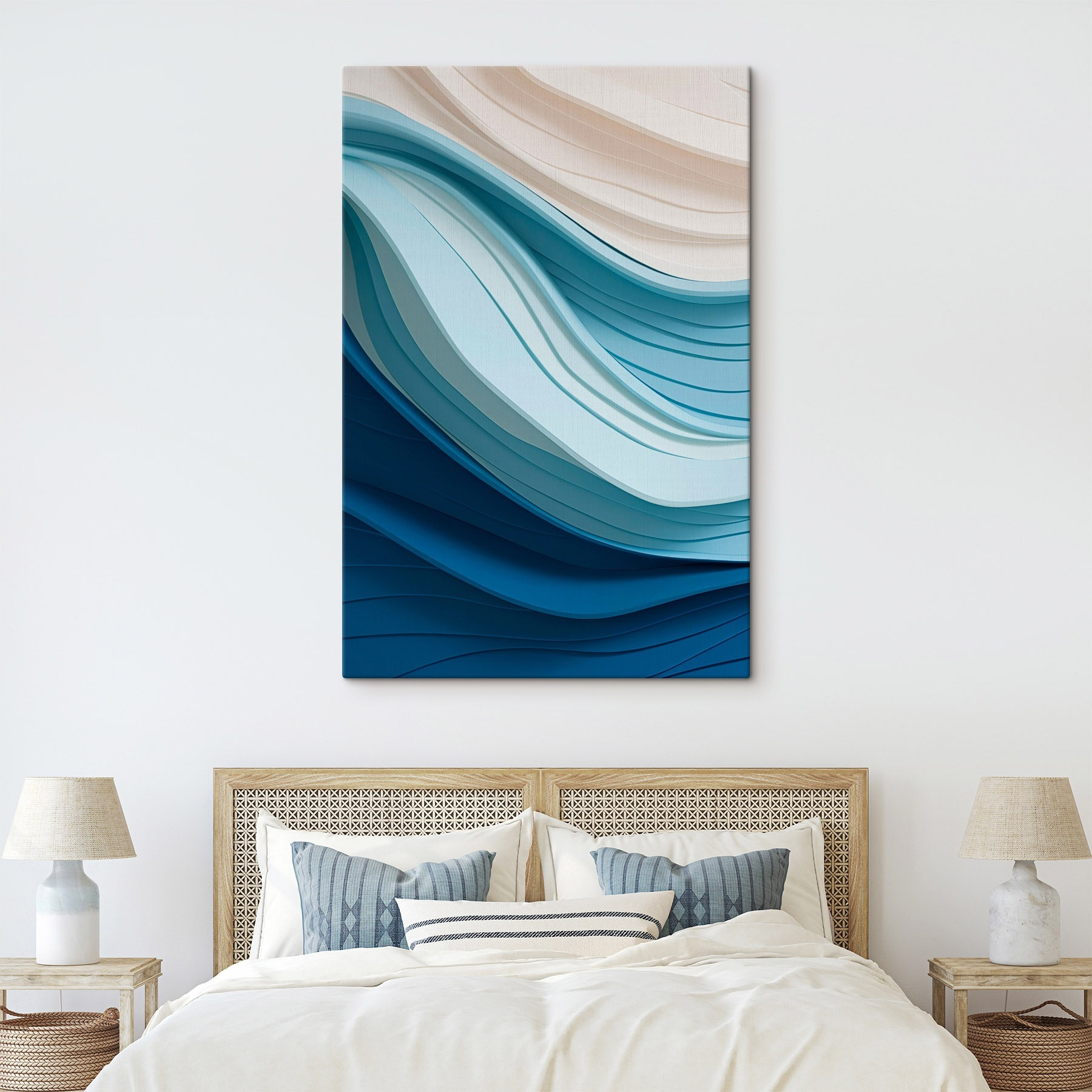 Duik in een zee van rust met deze fascinerende blauwe en witte golvende lijnen. Alleen al het beeld van dit doek in een knus hoekje of boven een strakke bank brengt een gevoel van rust. De zachte golven lijken te dansen en te stromen en fluisteren zoete woordjes van ontspanning. Perfect om een kamer nieuw leven in te blazen, het is alsof je een mini-strandvakantie in huis hebt. Misschien betrappen vrienden zichzelf er wel op dat ze glimlachen, in gedachten verzonken terwijl ze naar de speelse patronen kijken. Deze print siert niet alleen een muur, maar inspireert tot vredige momenten en voegt een vleugje creativiteit toe aan elke ruimte. Elke blik voelt als een frisse bries, die uitnodigt tot warmte en sereniteit, waardoor het een vanzelfsprekende keuze is voor mensen die houden van een unieke inrichting.