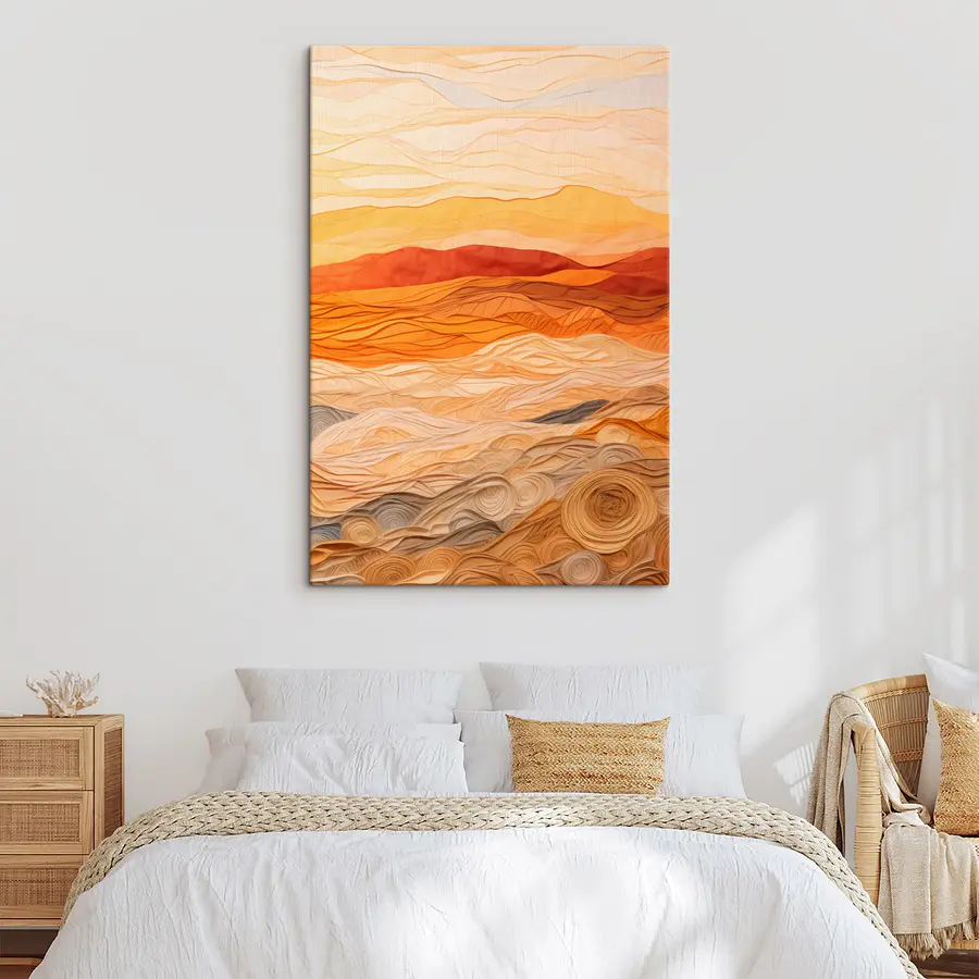 Transformeer elke muur met dit prachtige canvas kunstwerk met een dans van golvende lijnen in zachte, aardse tinten. Het is alsof de natuur zichzelf grillig op stof heeft geschilderd. Stel je voor dat je achterover leunt in je favoriete stoel, koffie drinkt en verdwaalt in die zachte wervelingen. Dit meubel kan een gesprek op gang brengen of gewoon een vredige achtergrond zijn voor een luie middag. Het is veelzijdig – perfect voor een gezellige woonkamer of een creatieve werkruimte. Voeg een beetje warmte en persoonlijkheid toe aan je ruimte, waar elke blik een gevoel van rust brengt. Wie wist dat een paar golven dat allemaal konden doen?