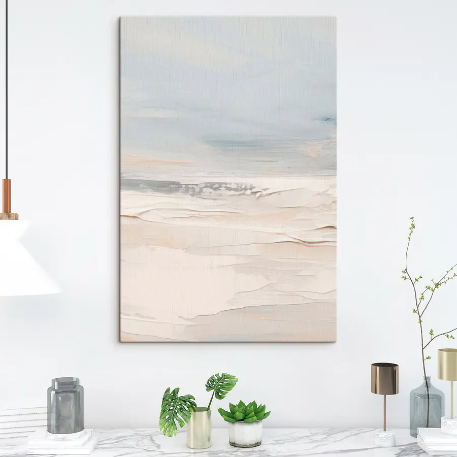 Verander elke muur in een serene ontsnapping met de Canvas Art met een dromerige witte en blauwe lucht, pluizige wolken die lui over het canvas drijven. Het is alsof je een stukje hemel binnenshuis haalt, maar dan zonder het hele weer. Stel je voor dat je in je knusse hoekje zit of in een levendige woonkamer, en plotseling hangt daar dat vleugje rust. Perfect voor die dagen dat je even moet denken aan frisse lucht en blauwe lucht – ideaal voor dagdromers of iedereen die even pauze wil nemen in de chaos van het leven. Een zacht duwtje in de rug om diep adem te halen en te ontspannen. Deze print is perfect om je ruimte op te fleuren en is een en al rust en schoonheid. Vooruit, laat je muren spreken!