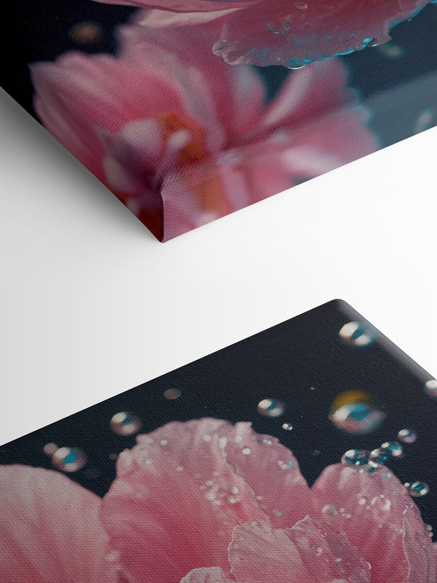 Stel je een vleugje zachtroze elegantie voor die een beetje magie brengt in elke kamer. Deze Canvas print, “Delicate petals in serene water”, legt perfect dat dromerige moment vast waarop bloemen en water in harmonie samen dansen. Het is alsof je thuis een serene tuin hebt, zonder de vervelende pollen!