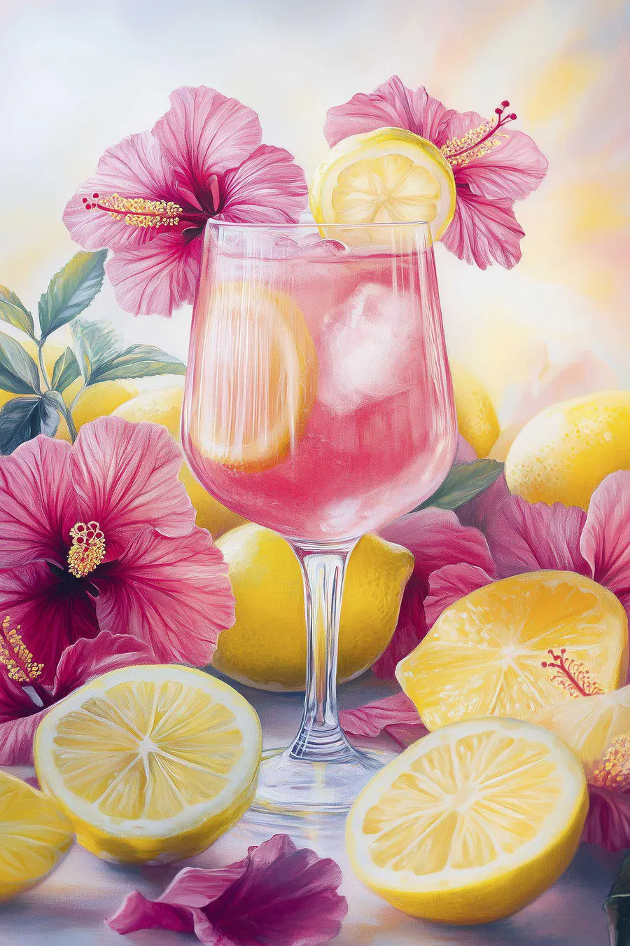 Fleur elke ruimte op met deze levendige canvasprint met een verfrissend glas roze drank, genesteld tussen vrolijke citroenen en mooie bloemen. Stel je voor dat je op een zonnige namiddag aan iets fris nipt terwijl je omringd bent door deze uitbarsting van kleur – echt, het is net een mini-vakantie aan je muur. De speelse tinten en het speelse arrangement brengen moeiteloos een gevoel van vreugde en warmte in de keuken of eetkamer. Bovendien is het een geweldige gespreksstarter: “Wat zit er in dat drankje?”. Perfect voor iedereen die houdt van een beetje eigenzinnigheid in hun inrichting. Het is meer dan kunst, het is een stukje gelukzaligheid.