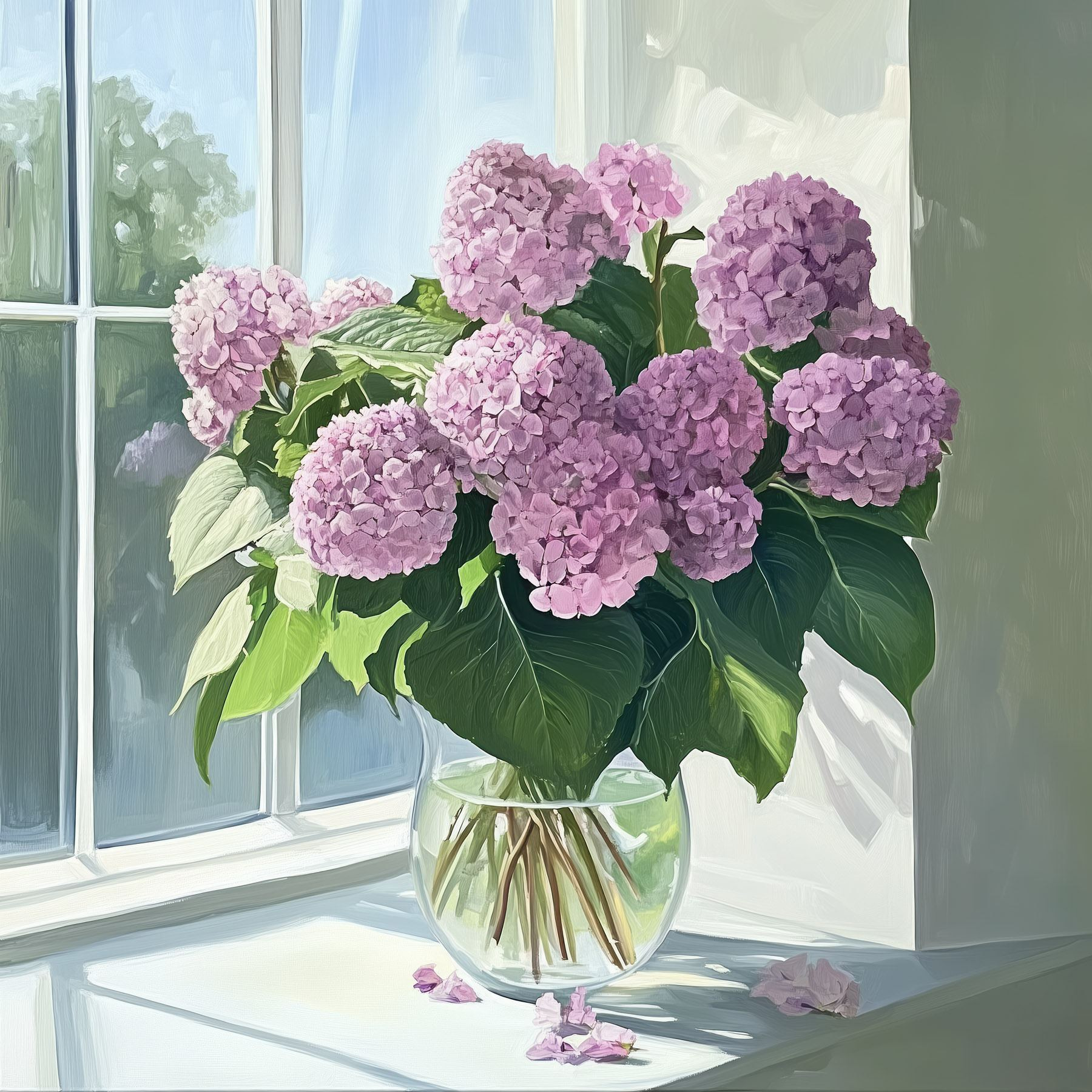 Fleur elk hoekje op met deze charmante canvasprint met een prachtig boeket hortensia’s. Stel je de zachte pastelkleuren voor die dansen in het licht en een serene sfeer creëren waardoor je zin krijgt om diep adem te halen en te ontspannen. Met dit werk haal je de schoonheid van de natuur in huis, perfect voor luie middagen bij het raam. Het fluistert verhalen van lente en warmte terwijl het moeiteloos je muren opleukt. Wie wil er nou niet naar deze bloeiende schoonheden staren? Combineer het met je favoriete knusse kleed en je hebt de perfecte opstelling om tot rust te komen na een lange dag.