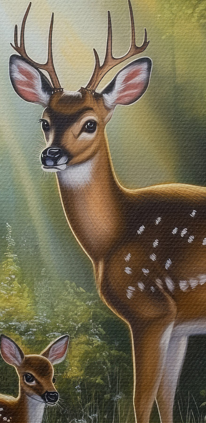 Transformeer je ruimte met deze betoverende canvasprint, “Deer in the Woods”. Zie het voor je: twee sierlijke herten in een zonovergoten bos, die een gevoel van rust en inspiratie bij je thuis oproepen. Dit stuk vangt de stille schoonheid van de natuur en is daarom perfect voor elke kamer die hunkert naar een vleugje sereniteit.