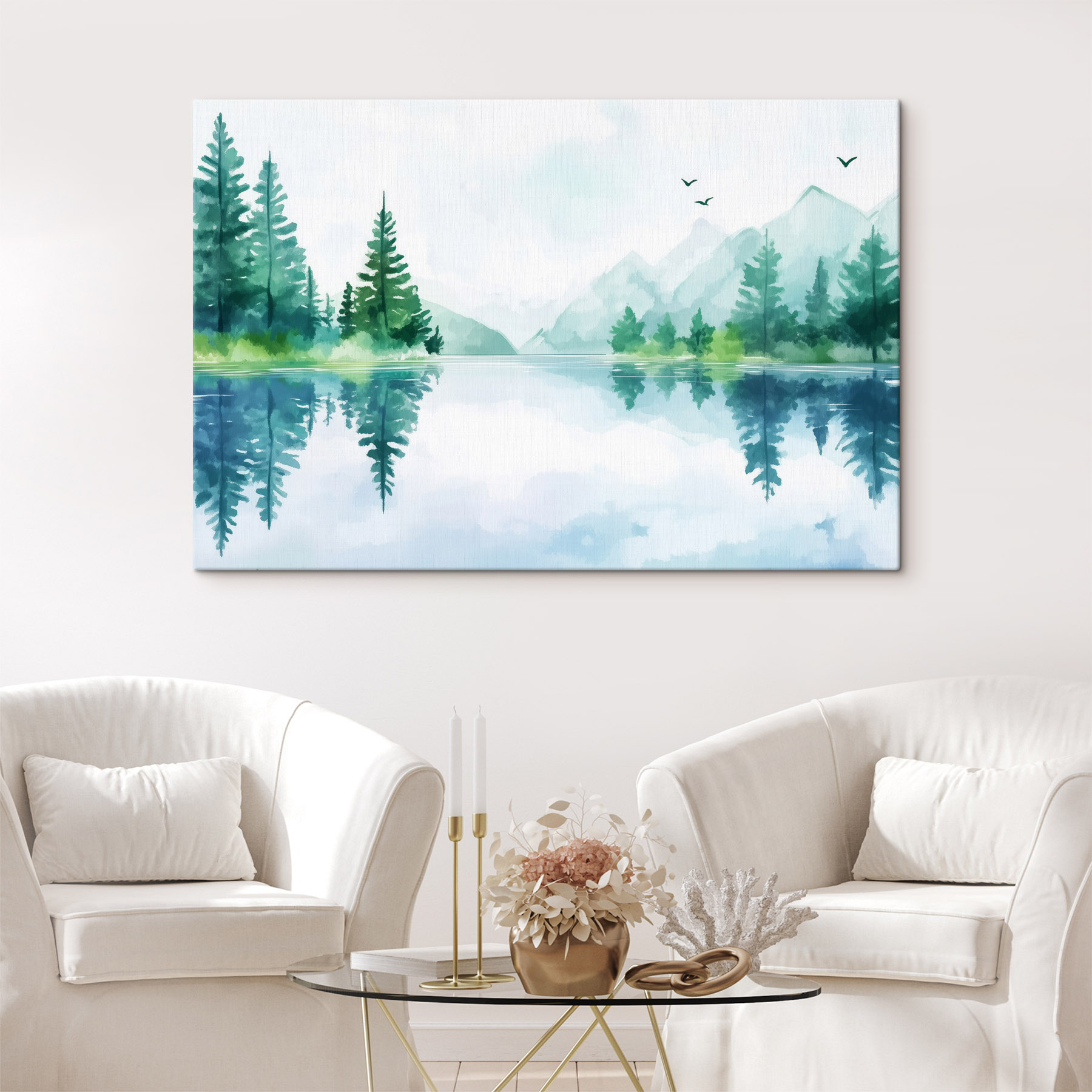 Dompel de ruimte onder in een rustige sfeer met deze fascinerende canvasprint met serene wateren, torenhoge bomen en majestueuze bergen. Stel je voor dat je een kamer binnenloopt en meteen het gevoel hebt dat je de natuur bent binnengestapt – perfect, toch? Elke penseelstreek fluistert kalmte en de zachte reflecties op het water maken iedereen een beetje dromerig. Het is een makkelijke manier om muren leven in te blazen en ze dat verfrissende buitengevoel te geven. Ideaal voor een gezellige woonkamer of dat vredige leeshoekje, waar elke blik uitnodigt tot een moment van ontsnapping. Ontkoppel jezelf, kom tot rust en laat de schoonheid van de natuur je overspoelen!