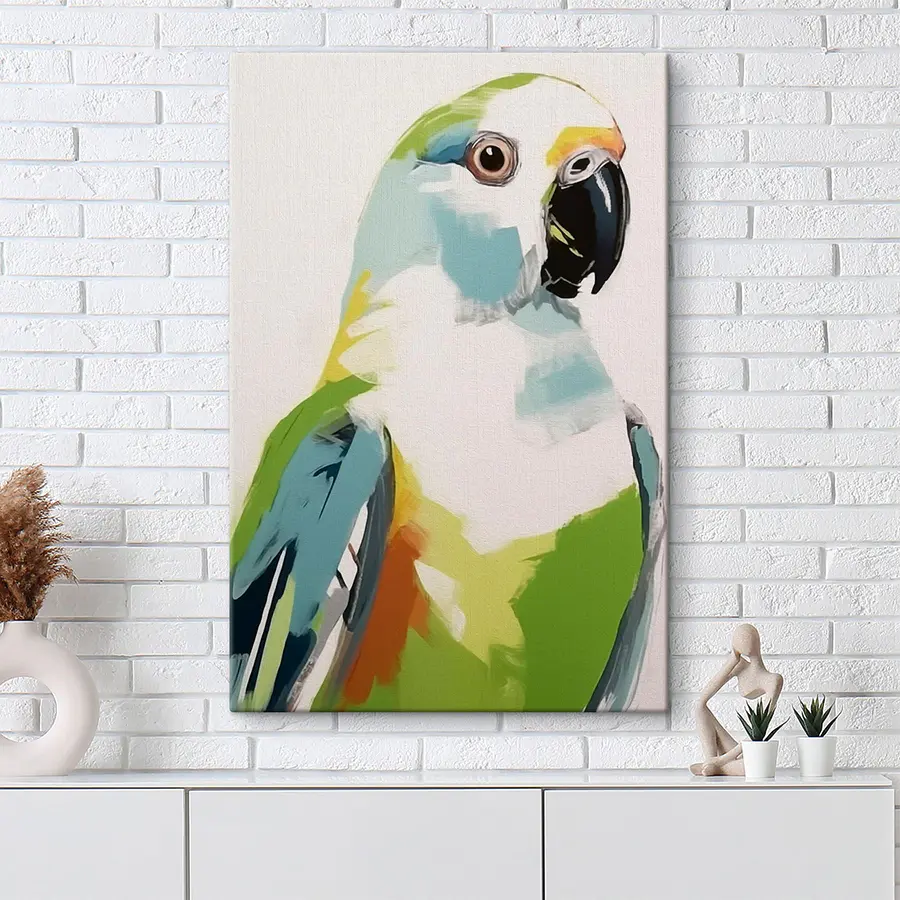 Fleur elke ruimte op met deze levendige canvasprint van een kleurrijke vogel met een opvallende zwarte snavel. Het is alsof je een stukje natuur in huis haalt, klaar om een lege muur van leven te voorzien. Stel je voor dat je er langs loopt en je net iets vrolijker voelt, alsof de vogel je vrolijk begroet. Dit stuk is niet alleen decoratie; het is een gespreksstarter, een kans om te dagdromen over exotische plaatsen. Perfect voor woonkamers, thuiskantoren of gezellige hoekjes die net iets speciaals nodig hebben. Wie kan die speelse charme weerstaan?