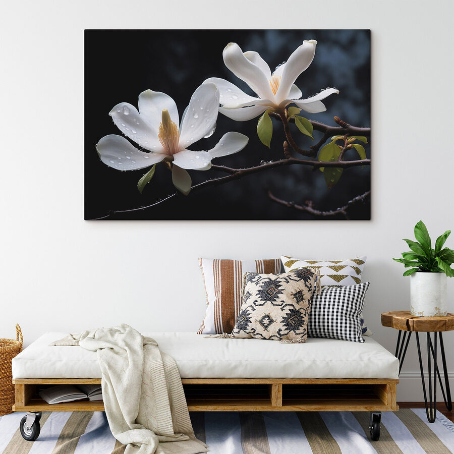 Transformeer je ruimte met de serene schoonheid van “Zachte bloemblaadjes versierd met waterdruppels”. Dit doek vangt de delicate charme van bloesems, elk bloemblaadje gekust door zachte regendruppels. Stel je voor dat je langsloopt en een kleine opkikker in je hart voelt als je dit rustige kunstwerk ziet. Het brengt een gevoel van rust, perfect voor gezellige hoekjes of om een werkruimte op te fleuren. Elke blik kan dagdromen opwekken van luie tuinwandelingen of serene, met regen doordrenkte ochtenden. Het is niet alleen decor; het is een eenvoudige herinnering aan de stille wonderen van de natuur, klaar om leven te blazen in je muren.