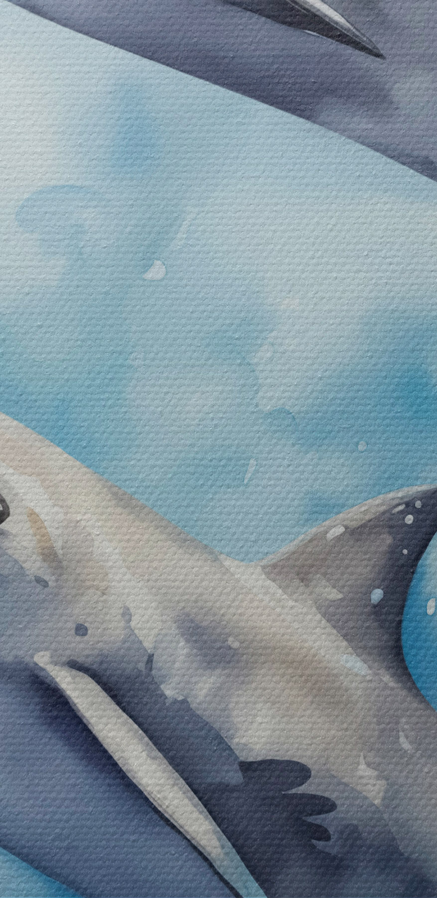 Duik in een dromerige oceaanscène met dit fascinerende doek van twee dolfijnen die gracieus door het glinsterende water glijden. Gevangen in een speels moment herinneren deze intelligente wezens ons aan de vreugde en vrijheid die we onder de golven vinden. De zachte blauwtinten en vloeiende aquarelstreken creëren een kalme sfeer, perfect om elke ruimte op te fleuren. Stel je dit vrolijke kunstwerk voor in een gezellige woonkamer of misschien in een kinderkamer. Het voegt een vleugje magie van de oceaan toe, waardoor de liefde voor het zeeleven wordt aangewakkerd, of misschien gewoon een paar dagdromen over stranduitstapjes. Kunst als deze kan iedereen, al is het maar voor even, meevoeren naar een serene vakantie aan zee.