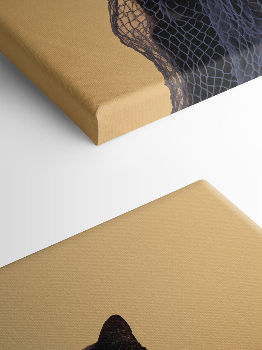 Stel je voor: een kat die zelfverzekerd een net draagt alsof hij net van de catwalk komt. Deze canvasprint, getiteld “Cat Wearing a Net”, brengt een speelse sfeer die zeker gesprekken op gang zal brengen. De opvallende zwarte vacht en die betoverende gouden ogen trekken je naar binnen en maken het moeilijk om weg te kijken. Perfect voor een gezellige woonkamer of een eigenzinnig kantoor, het verlicht de sfeer en voegt een vleugje eigenzinnigheid toe. Vrienden zullen misschien zelfs grinniken en erop wijzen dat je ruimte letterlijk een catwalk is geworden. Het is niet zomaar kunst; het verandert je muur in een canvas van persoonlijkheid.