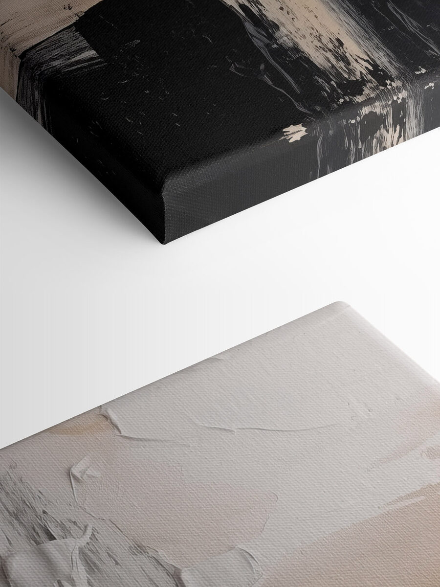 Deze canvasprint is een kleine conversatiestarter, vind je niet? Met zijn gedurfde zwarte en witte streken brengt hij een sfeer van moeiteloze coolheid aan elke muur. Stel je voor dat je dit in een woonkamer hangt, gasten zullen erdoor worden aangetrokken en proberen het verhaal te ontcijferen. De lagen verf creëren een heerlijk spel van diepte en emotie, als een stemmige zonsondergang op een regenachtige dag. Het is perfect voor mensen die houden van een mix van drama en eenvoud. Verander een lege ruimte in iets speciaals – misschien betrap je jezelf er wel op dat je er een blik op werpt terwijl je van je ochtendkoffie nipt.