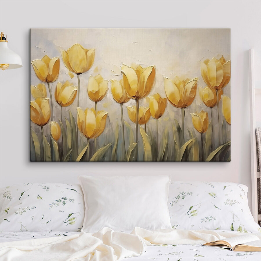 Fleur elke kamer op met deze prachtige canvasprint van gele bloemen. Stel je voor dat je je kamer binnenloopt en begroet wordt door een vrolijke uitbarsting van zonlicht – die gouden bloemblaadjes lijken gewoon te dansen! Perfect voor een woonkamer of een knus hoekje, het voegt een vleugje kleur toe dat direct de stemming verhoogt. Stel je een luie zondag voor, koffie in de hand, starend naar dit kunstwerk en je voelt een golf van rust over je heen komen. Elke bloem vertelt een klein verhaal en herinnert je aan warme lentedagen. Het is alsof je een stukje natuur thuis hebt – wie zou daar niet van houden?