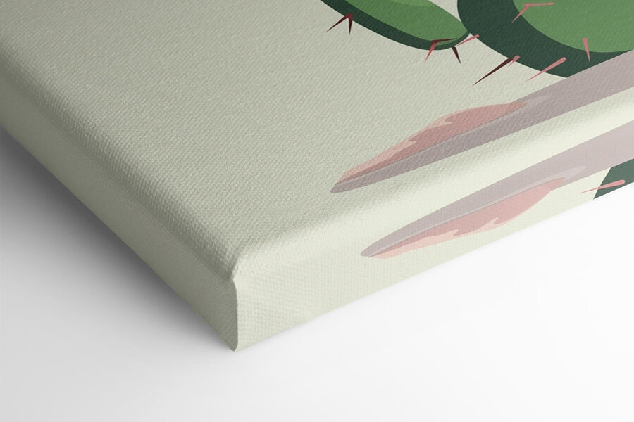 Fleur elke ruimte op met deze prachtige canvasprint met een cactus versierd met charmante roze bloemen. Het is net een leuk woestijnfeestje voor je muren! Stel je voor dat je een kamer binnenloopt en meteen de warmte van een zonnige dag voelt. Die felle kleuren en het speelse ontwerp zijn perfect voor een woonkamer of een gezellig hoekje. Bovendien breng je zo een beetje natuur naar binnen zonder dat je water hoeft te geven. Vrienden zullen je zeker vragen waar je dit unieke exemplaar hebt gevonden. Perfect om een saaie muur op te fleuren en een vleugje persoonlijkheid toe te voegen, vind je niet? Zeker een vrolijke gespreksstarter!