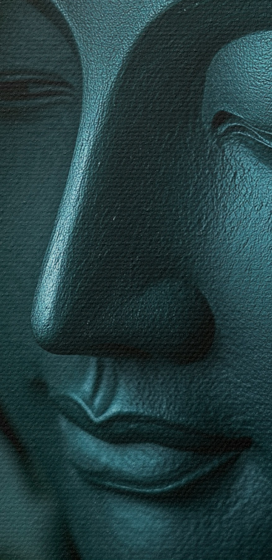Transformeer elke ruimte met deze betoverende canvasprint met een sereen gezicht tussen weelderige bladeren. Stel je voor dat je een kamer binnenstapt en meteen een golf van rust over je heen voelt komen, als een zacht briesje op een zonnige middag. Dit stuk nodigt uit tot een moment van bezinning, perfect voor een gezellig leeshoekje of een rustig meditatiehoekje. De rustgevende kleuren en natuurlijke uitstraling brengen leven in je interieur en creëren een harmonieuze mix van natuur en kunst. Of het nu een cadeau is voor een zielzoeker of een traktatie voor jezelf, deze boeiende muurschildering brengt een vleugje vrede die moeilijk te weerstaan is. Wie wil er nu niet een beetje sereniteit omgeven door groen?