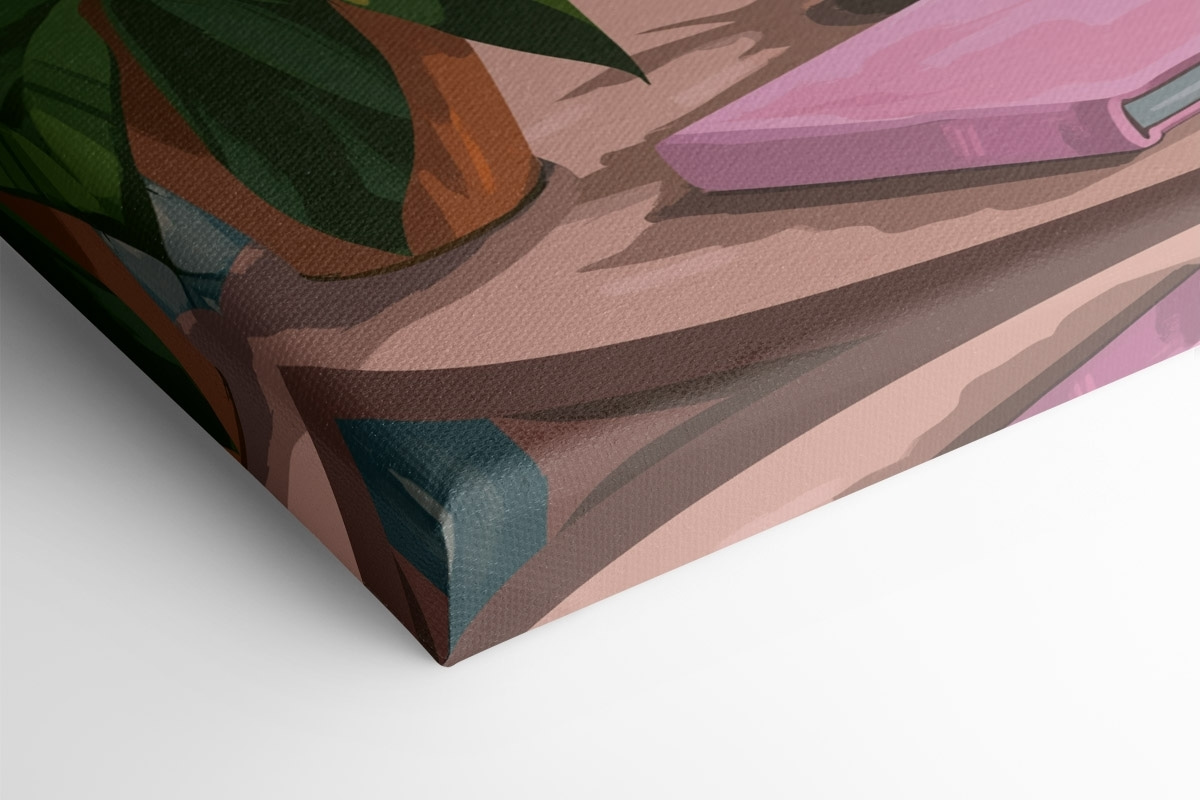Fleur elke ruimte op met deze prachtige canvasprint met een vaas met levendige blauwe bloemen en een flikkerende kaars, omlijst door de charme van een raam. Stelt u zich eens voor dat u zich oprolt met een warm kopje thee en een zacht briesje voelt terwijl het zonlicht door de kamer danst. Het is alsof je een stukje van een gezellig café in huis haalt. Perfect voor een woonkamer, studeerkamer of zelfs een rustig hoekje waar inspiratie stroomt. Voeg dit stuk toe en laat de vreugde van verse bloemen en kaarslicht enkele mooie momenten in het dagelijks leven aanwakkeren.