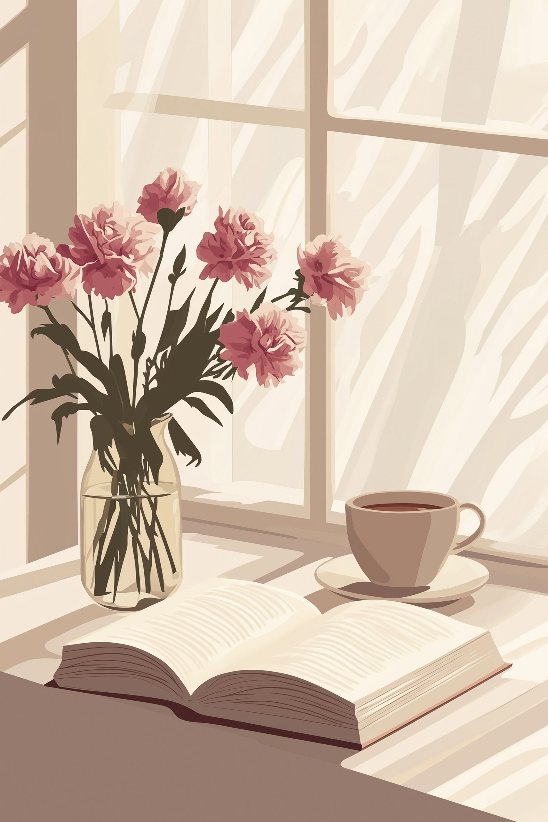 Stel je voor dat je in een zonovergoten hoekje gaat zitten met een kopje iets warms, terwijl een mooie canvasprint van een boek en een vaas met bloemen de muur vult. Dit stuk herinnert je eraan om even stil te staan en te genieten van de eenvoudige genoegens in het leven. Met zachte, vrolijke kleuren en een relaxte sfeer brengt het moeiteloos een vleugje natuur en literatuur in elke kamer. Stel je voor dat hij warmte toevoegt aan een rustig leeshoekje of een eethoek opfleurt. Het is alsof je ruimte fluistert: “Neem even de tijd, haal adem en misschien zet je nog wel een kopje”. Perfect voor dromers en theeliefhebbers!