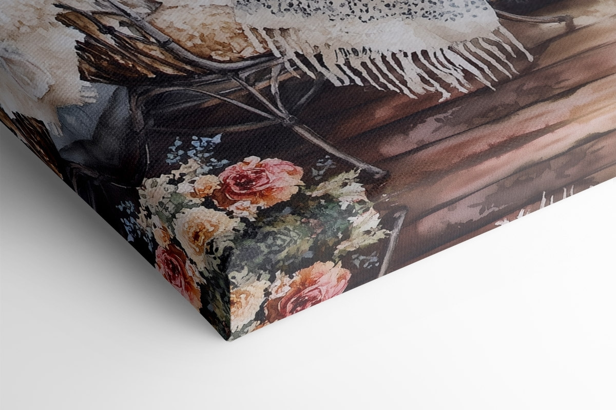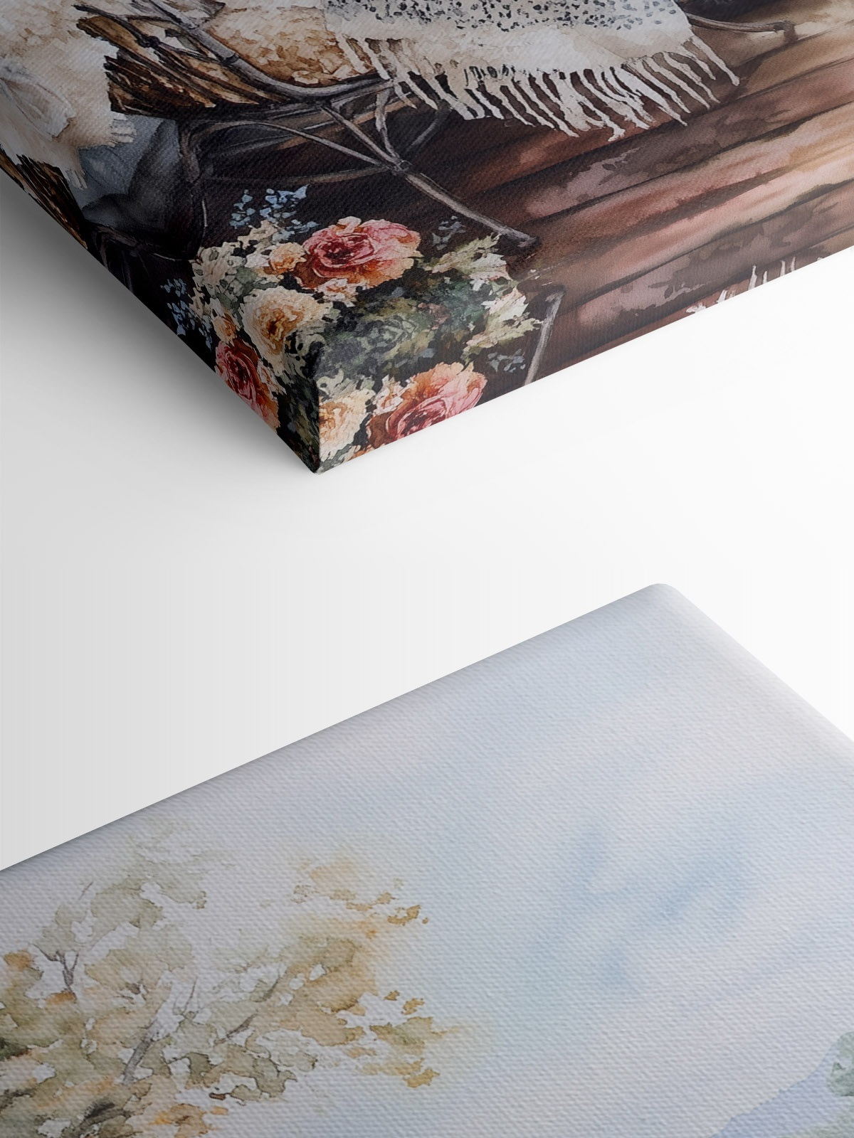 Stel je voor dat je op een gezellige veranda stapt, waar de zachte geluiden van de natuur je omarmen als een warme knuffel. Deze canvasprint legt dat moment perfect vast en schildert een rustige scène met schapen die vredig grazen in een zonovergoten weide. De gemoedelijke sfeer van de comfortabele stoelen en het zachte kleed voegen een vleugje huiselijke charme toe, waardoor het perfect is voor elke muur. Het is alsof je een stukje pastoraal geluk in je woonkamer hebt. Stel je voor dat dit boven een comfortabele bank of een leeshoek hangt – het zal ongetwijfeld gesprekken opwekken en misschien zelfs een paar keer dagdromen over luie middagen op het platteland.