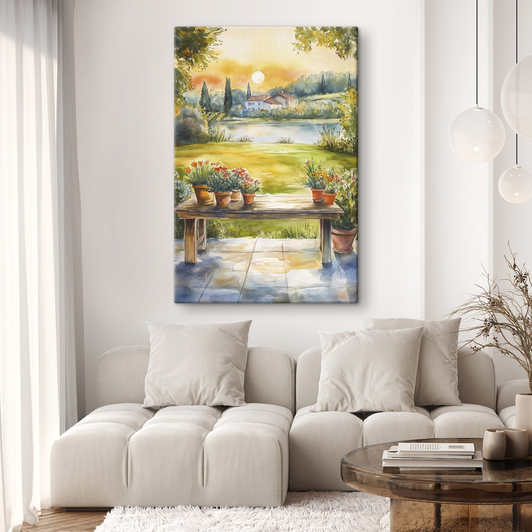 Verander elke muur in een gezellig toevluchtsoord met deze canvasprint met een charmant aquareltafereel van een tafel versierd met levendige potplanten. Het voelt alsof je een zonovergoten tuin binnenstapt, waar gelach en een warm briesje blijven hangen. Perfect voor degenen die hunkeren naar een beetje natuur binnenshuis! Stel je voor dat je een brunch hebt met vrienden, omringd door deze vrolijke bloemen – je kunt de vogeltjes bijna horen fluiten, toch? Dit kunstwerk brengt een frisse sfeer in elke kamer, waardoor het niet alleen decor is, maar ook een herinnering om te genieten van de kleine dingen in het leven. Wie zou dat niet willen?