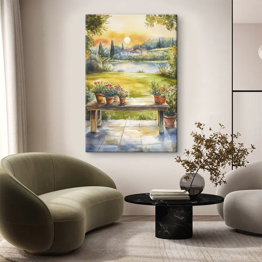 Verander elke muur in een gezellig toevluchtsoord met deze canvasprint met een charmant aquareltafereel van een tafel versierd met levendige potplanten. Het voelt alsof je een zonovergoten tuin binnenstapt, waar gelach en een warm briesje blijven hangen. Perfect voor degenen die hunkeren naar een beetje natuur binnenshuis! Stel je voor dat je een brunch hebt met vrienden, omringd door deze vrolijke bloemen – je kunt de vogeltjes bijna horen fluiten, toch? Dit kunstwerk brengt een frisse sfeer in elke kamer, waardoor het niet alleen decor is, maar ook een herinnering om te genieten van de kleine dingen in het leven. Wie zou dat niet willen?