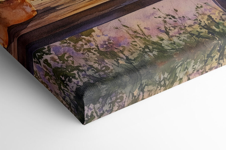 Tover een muur om in een uitnodigend toevluchtsoord met deze betoverende aquarelprint van een veranda versierd met levendige bloemen in potten. Stel je voor: een zachte zonsondergang met warme tinten terwijl je aan je favoriete drankje nipt en de zachte bries voelt. De levendige kleuren van de bloemen nodigen uit tot glimlachen en gesprekken, waardoor het een mooie aanvulling is voor gezellige hoekjes of om een minder spannend hoekje op te fleuren. Stel je voor dat je gasten langslopen en het serene tafereel bewonderen, verdwaald in gedachten van warme zomeravonden. Het is niet zomaar decoratie; het is een stukje gelukzaligheid.