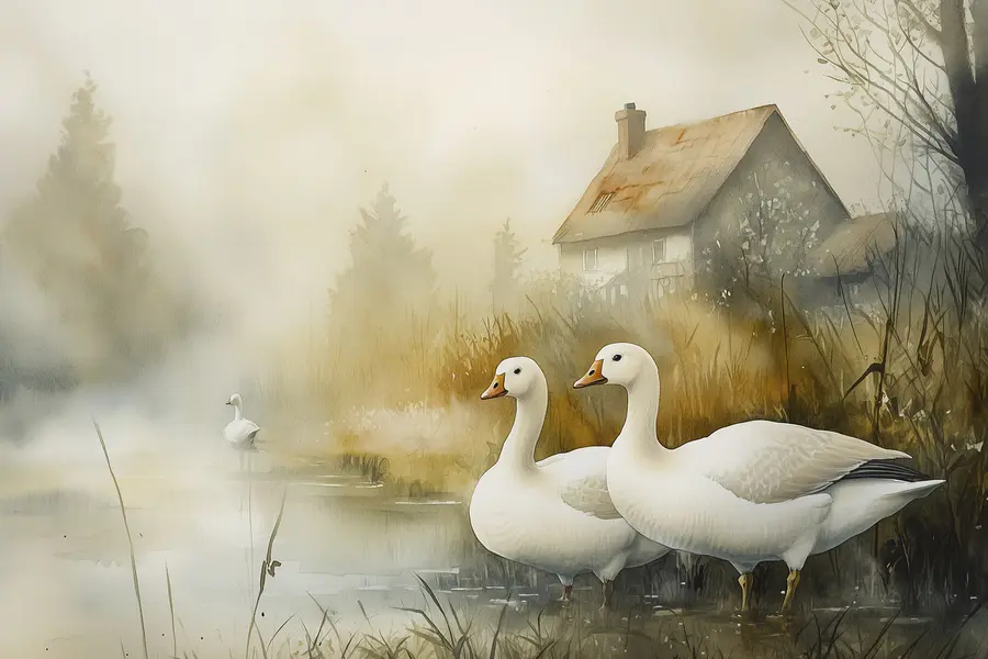 Stel je voor dat je je ruimte verandert in een serene ontsnapping met deze aquarelafdruk van ganzen die gracieus luieren bij een rustige vijver. Het is als een frisse wind! De zachte, gedempte tinten nodigen uit tot rust en zijn perfect om een woonkamer op te fleuren of een gezellig hoekje te creëren. Stel je voor dat je lekker gaat liggen met een boek in de buurt, een blik werpt op de kunst en een golf van rust voelt. Het is het soort kunstwerk dat je aanzet tot dagdromen. Misschien ga je zelfs wel een tuintje aanleggen of dagdromen over het platteland. Ga je gang, laat deze ganzen het charmante middelpunt zijn dat je hart verwarmt en je stemming verlicht.