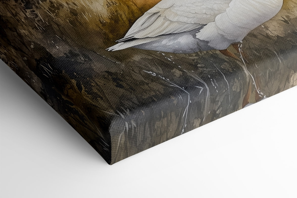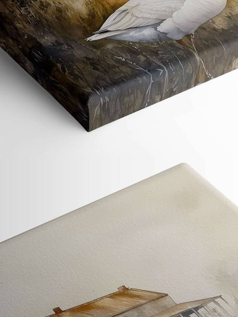 Stel je twee ganzen voor die samen in een sereen veld staan en rustig een praatje maken, terwijl de natuur fluistert op de achtergrond. Deze aquarelafdruk legt die perfecte kalmte vast, waardoor het een charmante toevoeging is aan elke ruimte. De zachte kleuren creëren een gezellige sfeer, perfect voor een woonkamer of een hal. Het is alsof je een stukje natuur in huis haalt zonder de modder! Stel je voor dat je aan een kopje thee nipt en geniet van het uitzicht – deze gevederde vrienden kunnen zelfs een glimlach op je gezicht toveren. Perfect voor dierenliefhebbers of iedereen die een vleugje rustige schoonheid wil toevoegen aan zijn inrichting. Het is schattig, boeiend en o zo vredig.