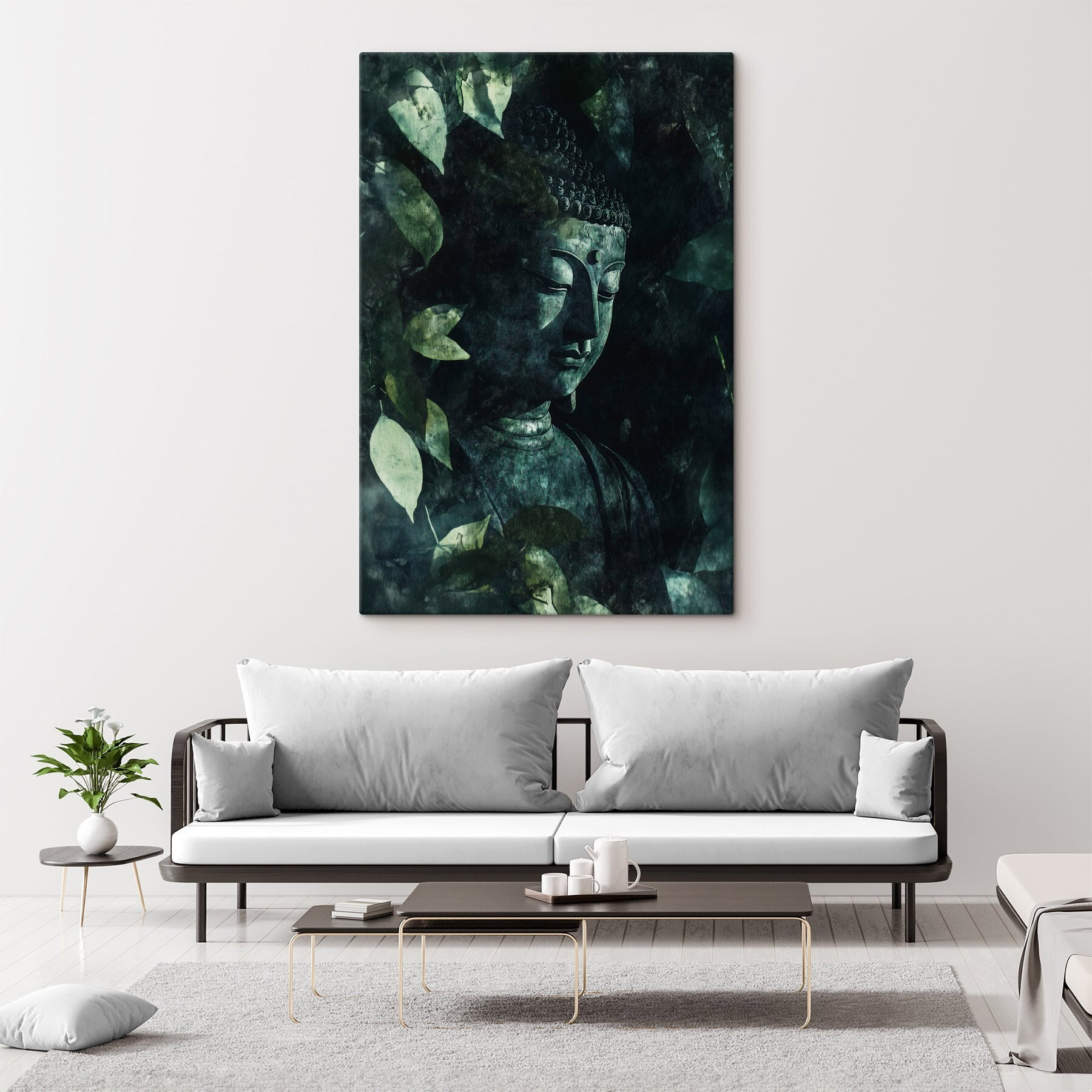 Tover elke muur om in een sereen toevluchtsoord met deze prachtige canvasprint van een Boeddhabeeld, omringd door zachte bladeren. Het is alsof je een chille Zen buddy in je kamer hebt, die uitnodigt tot rust en mindfulness. Stel je voor dat je thuiskomt na een lange dag en je voelt die onmiddellijke kalmte over je heen spoelen door alleen maar naar deze schoonheid te kijken. De aardetinten passen prachtig bij elke interieurstijl en voegen een vleugje rust toe zonder te overdreven te zijn. Perfect voor een meditatieruimte, een leeshoek of gewoon die ene muur die vraagt om wat karakter. Het kan zelfs inspireren tot een paar diepe gedachten of spontane momenten van dankbaarheid. Hoe verfrissend!