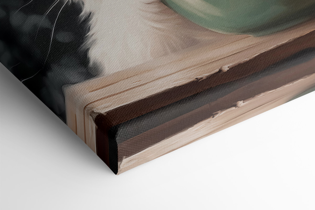 Maak kennis met de prachtige canvasprint met een schattige kat die een kopje wiegt. Het is een van die stukken die meteen een glimlach op je gezicht toveren en een gesprek op gang brengen. Stel je voor dat je een kamer binnenloopt en begroet wordt door die grote, nieuwsgierige ogen – het is alsof dit katje al je geheimen kent. Of het nu in een gezellig hoekje staat of boven een koffiebar hangt, het voegt een vleugje eigenzinnigheid toe dat ieders dag kan opvrolijken. Perfect voor kattenliefhebbers of iedereen die een kleine dosis schattigheid nodig heeft, kan deze print zelfs een maandagochtend een beetje specialer laten voelen. En niet te vergeten, het is een vriendelijke herinnering om even op adem te komen, koffie te drinken en te genieten van de kleine dingen.